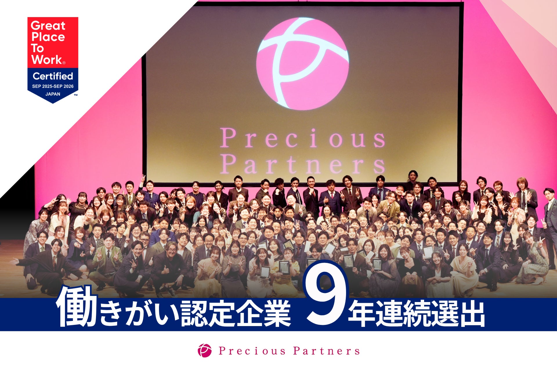 採用コンサルティング事業を行う株式会社プレシャスパートナーズ(本社:東京都新宿区、代表取締役社長CEO:髙﨑 誠司、以下:プレシャスパートナーズ)は、Great Place to Work® Institute Japan(以下、GPTW)が主催する2026年版「働きがいのある会社」認定にて「働きがい認定企業」として選出されましたことをお知らせいたします。2018年~2025年版の選出に続き、9年連続での選出となります。