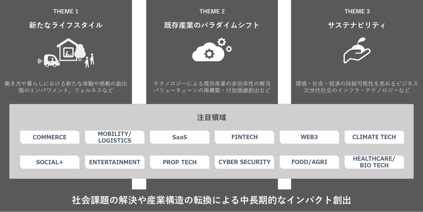 成長領域において革新的なテクノロジーやビジネスモデルを有する国内外のスタートアップに積極的にアプローチし、社会課題の解決や産業構造の変革といった中長期的な社会インパクト創出を目指します。