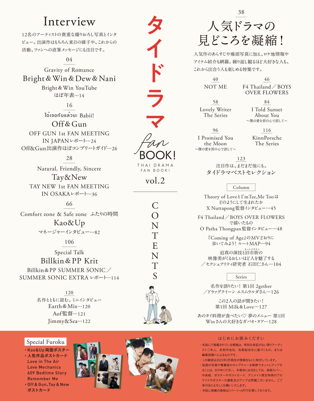 本誌には、Off&Gunや、Tay&NewのポストカードとKao&Upのポスターが付いています!