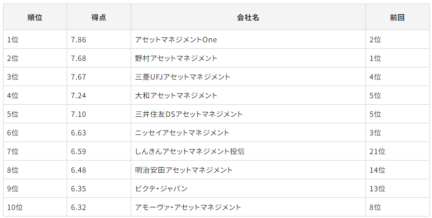 総合第1位は、アセットマネジメントOneが獲得しました。