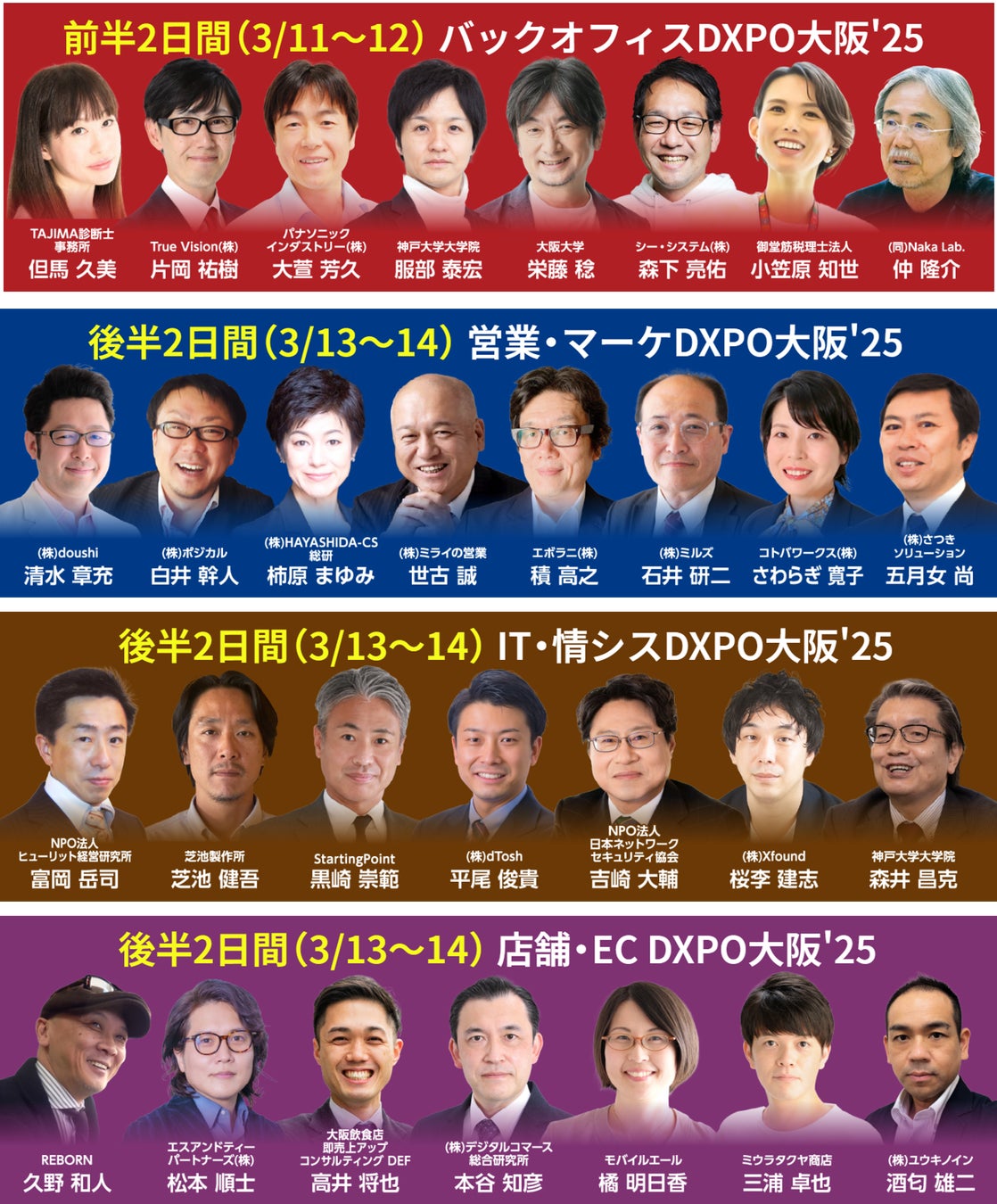 営業・マーケ/IT・情シス/店舗・EC DXPO大阪'25では、デジタルマーケティングやSNSの豊富な知見を持つエボラニ(株) 積高之氏、情報セキュリティ対策の普及啓発に取り組む(特非)日本ネットワークセキュリティ協会吉崎大輔氏が登壇。