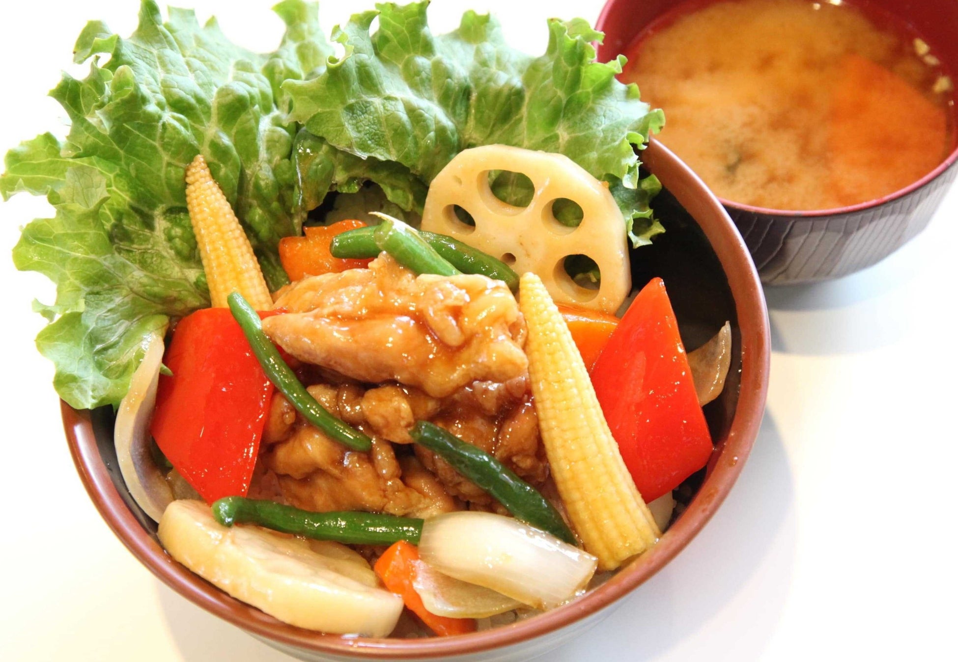産地ならではの信玄鶏と、ゴロッと食べ応えのある彩り野菜を"大戸屋秘伝の黒酢あん”を絡めて仕上げた、からだ想いの丼ぶりです。