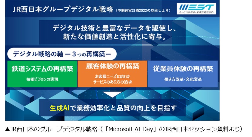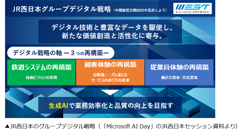 JR西日本は、デジタル技術と豊富なデータを駆使し、新たな価値創造と活性化に寄与することを目標にしたグループデジタル戦略を推進しています。