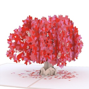 カードを開くと、ハートの花弁が舞う大きな木が飛び出します。開いたままそのまま飾っても素敵。手紙にもサプライズ感をプラスすることができるアイテムです。
