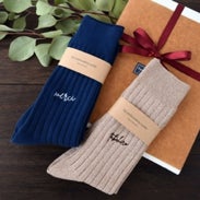 8色の生地の色と、10色の刺繍糸の色を選んで、入れる文字をオーダーできるソックス。ぱっと見て名前だとわかりづらいおしゃれなフォントで、幅広い年代の方に楽しんでもらえるデザインです。