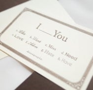 いつもは恥ずかしくて言えない気持ちを伝えるメッセージカード。「I ___ You」と書かれたカードに、「like」や「love」など自分の気持ちを選んで書き足します。見た人も思わず笑みが溢れそう。