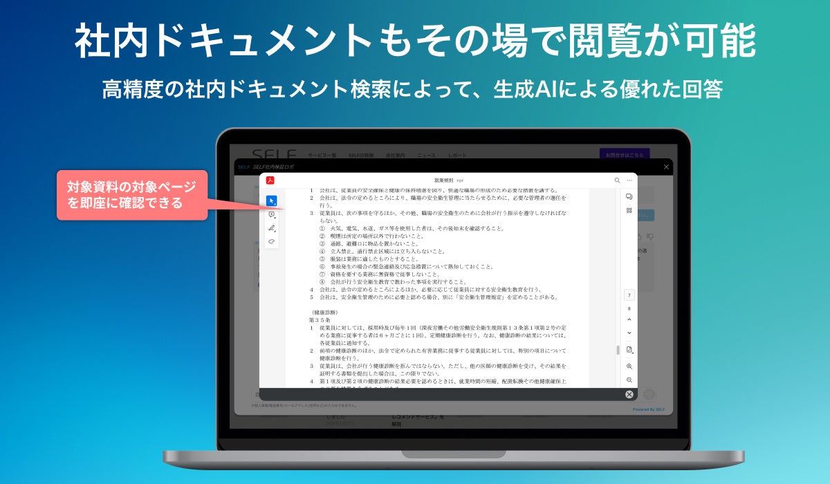・SELFBOTの高い精度での社内ドキュメントの検索