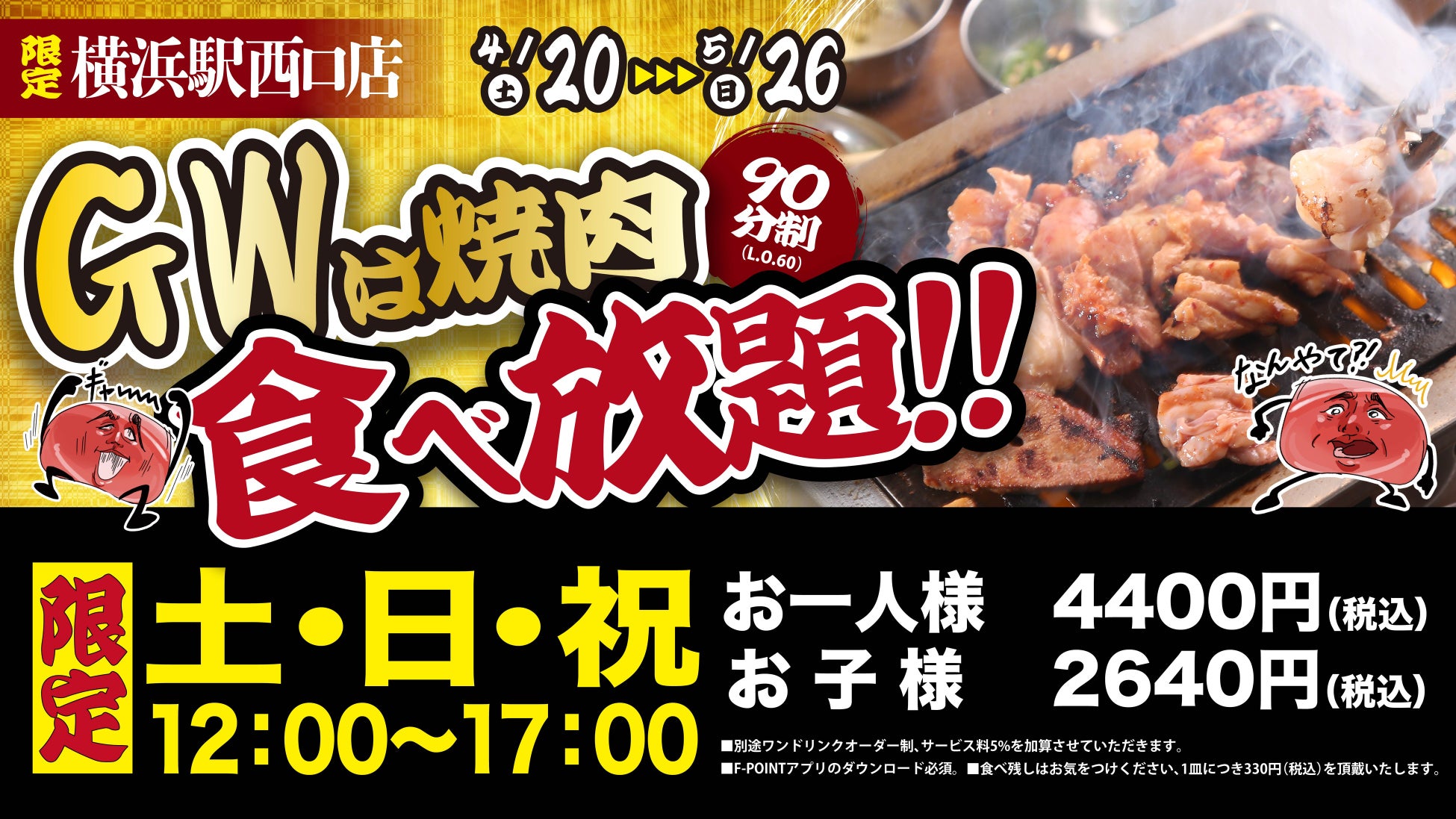 「大阪焼肉・ホルモン ふたご」(以下焼肉ふたご)では、お客様に最高の状態で厳選牛&新鮮ホルモンを召し上がっていただくため、仕入れから手間と時間と愛情をかけた仕込みから味付けまでをほとんど手作業で行っています!そのため焼肉ふたご全店舗では「食べ放題」ができませんでしたが、この度「横浜駅西口店」で期間限定食べ放題イベントを開催!日頃の感謝を込めた大盤振る舞い!初めてのお客様も常連さまもぜひこの機会にお財布を気にせず、焼肉ふたごの人気メニューから38品をおなか一杯お楽しみください!