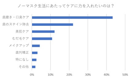 特に脱マスク派は、マスク生活でこっそり楽しんだ「いかすみパスタ」や「ペペロンチーノ」など歯の着色や口臭を気にしない食生活を引き続き楽しむために「歯磨き・口臭ケア」「ステイン除去」に力を入れたいと考えていることがわかった。