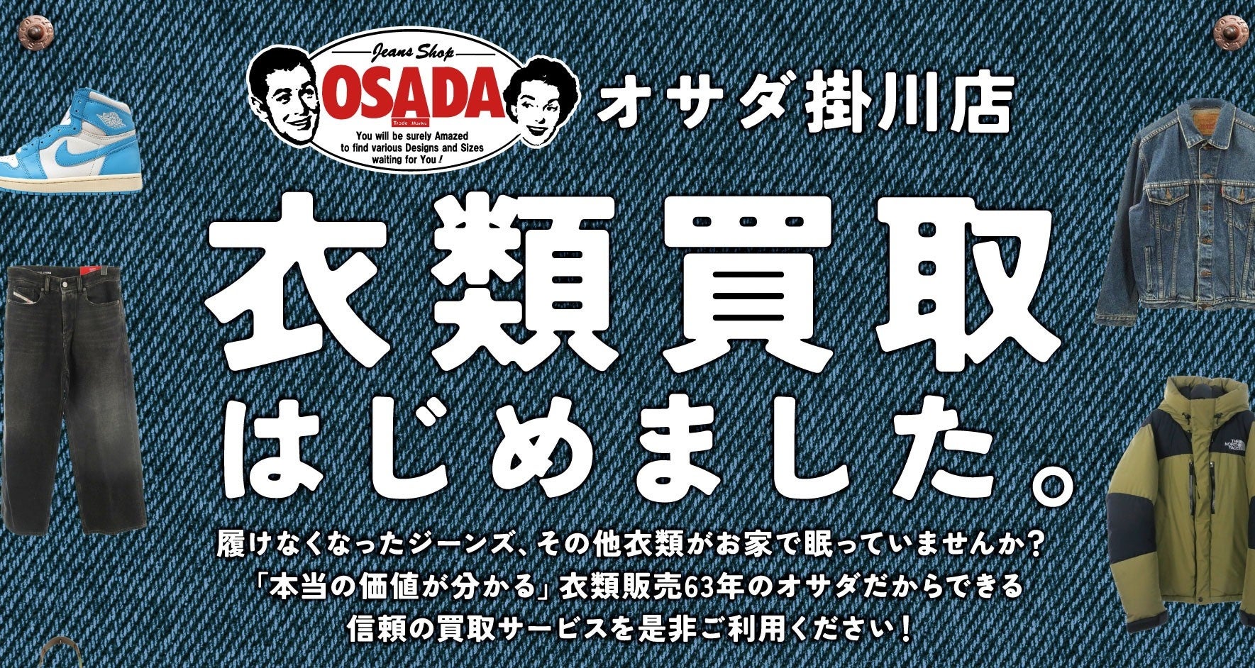 「ジーンズショップOSADA掛川店」に併設しており、お買い物のついでに気軽に査定をご利用いただけます。