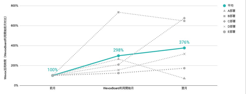 また、とある企業様では、Wevox Boardを利用し始めたチームで、Wevoxの活用時間が平均10倍になっており、チームづくりに対する関心が高まったことが調査結果からわかりました。