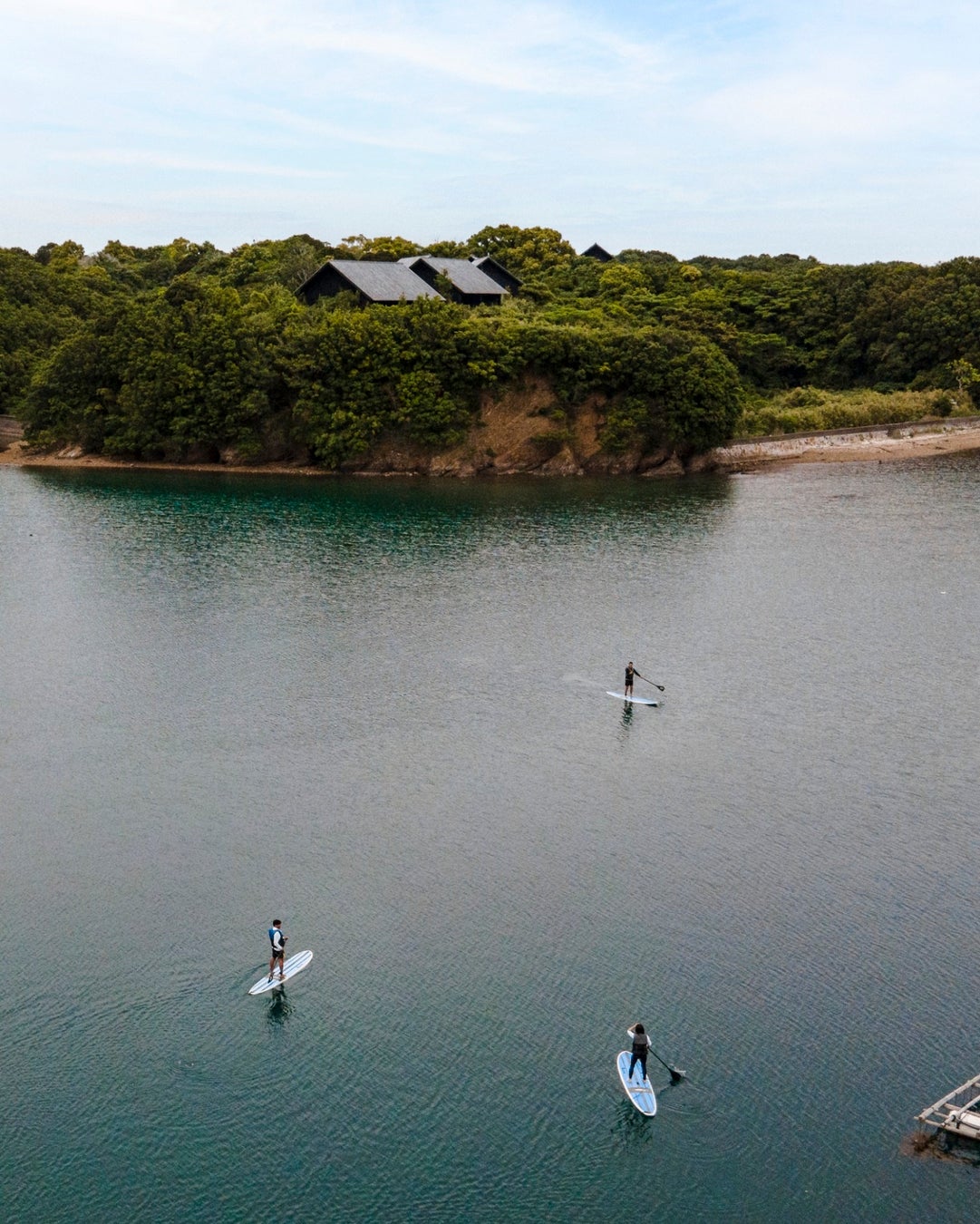 リアス式海岸と大小の島々が作り出す絶景の英虞湾は、波静かな内湾だからこそ、カヤックやSUP(スタンドアップパドルボート)をお楽しみいただけます。カヤックは、インストラクターと一緒に初心者の方でも安心してご参加いただけ、真珠やアオサの養殖筏が浮かぶ風光明媚な景色を眺めながら、天気によっては、小島によってちょっとひと休み。また、SUPはエクササイズ効果も抜群です。時間ごとにかわる空と海の色を眺めながら自然に心をゆだね、日常から解き放たれた時間を満喫いただけます。