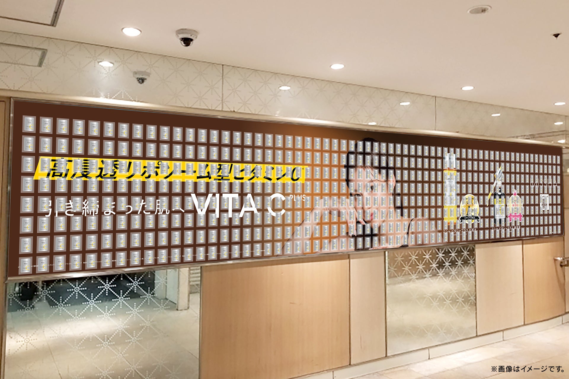 【第四弾】ミシャ ミューズ TWICE SANAの広告が福岡に出現!リポソーム型ビタミンC*¹「ミシャ ビタCプラス シリーズ」のサンプルを剥がしてもらえるピールオフ広告掲出