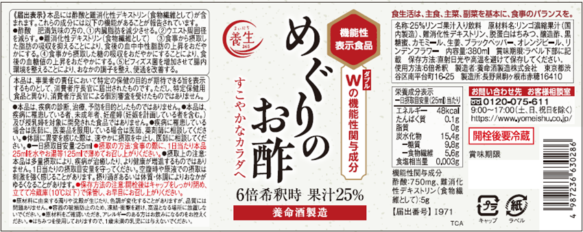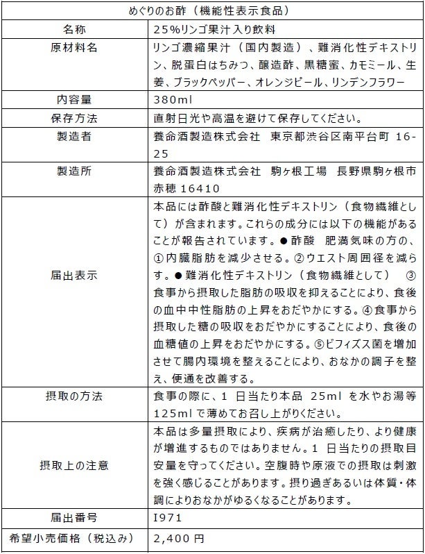 ・養命酒製造が提案する、機能性表示食品のお酢飲料