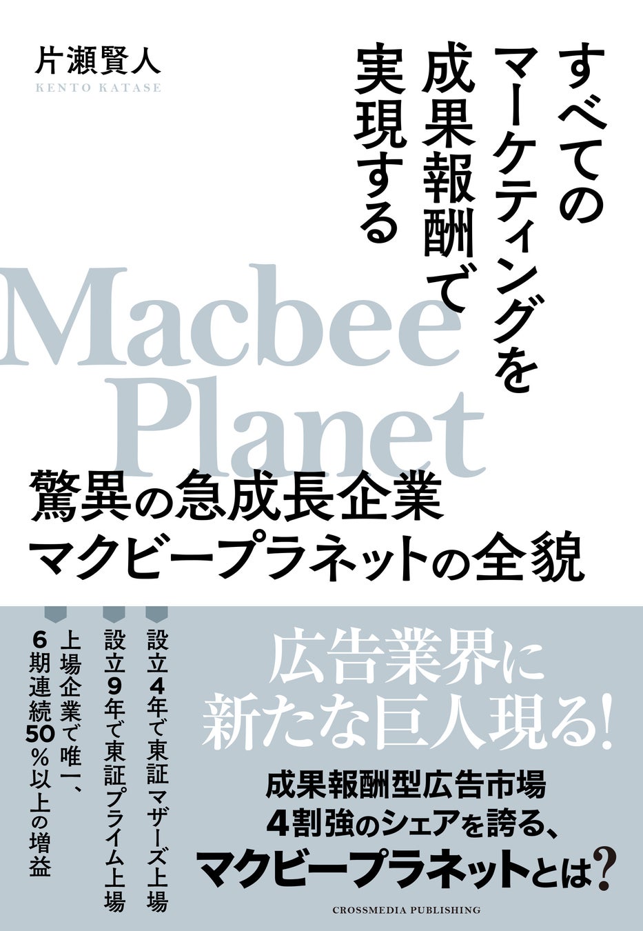 株式会社Macbee Planet(本社所在地:東京都渋谷区、代表取締役社⻑:千葉 知裕、以下「マクビープラネット」)に関する書籍『すべてのマーケティングを成果報酬で実現する 驚異の急成長企業マクビープラネットの全貌』が、クロスメディア・パブリッシングより2025年5月23日に刊行されたことをお知らせいたします。本書は、成果報酬マーケティングで成長する当社独自のビジネスモデルに、経済誌で活躍する記者・片瀬 賢人氏が注目し、長期間にわたる密着取材を通じて執筆されたものです。創業者や現代表の千葉、社員への丁寧なインタビューを通じて当社の成長背景と、業界構造に与えているインパクトなどを多角的に検証し、第三者の視点から客観的に描かれた一冊となっています。