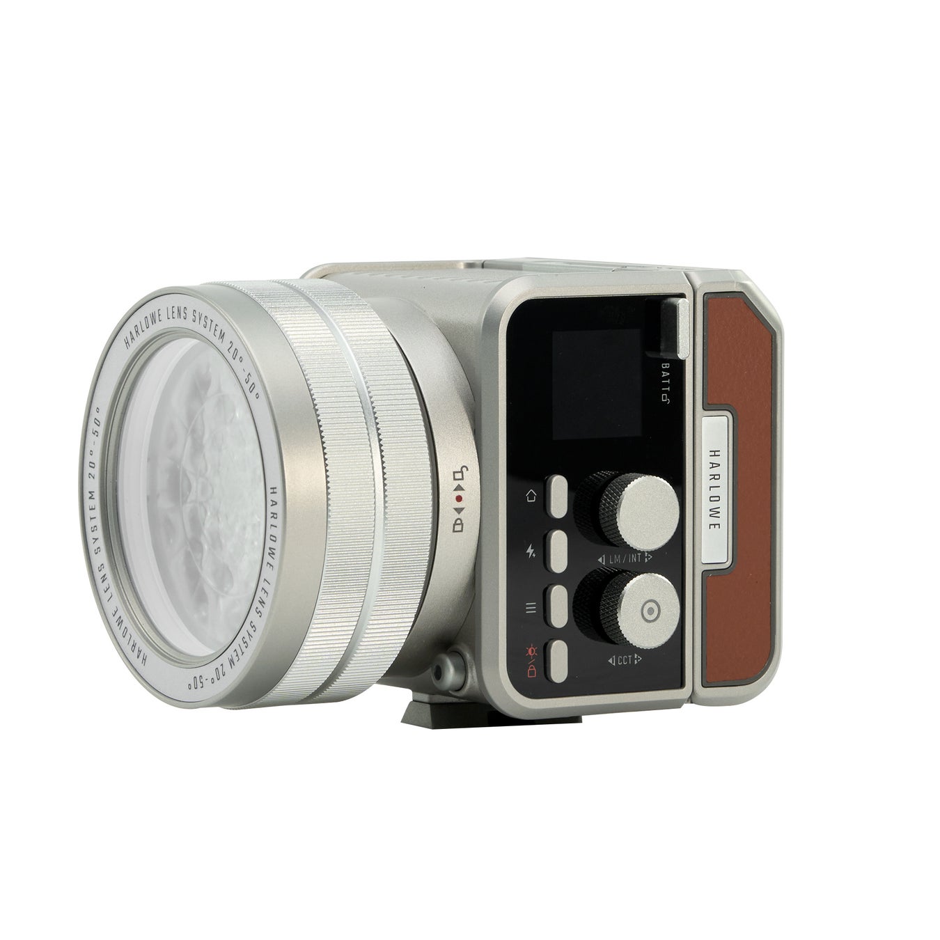 中判フィルムカメラを彷彿とさせるバイカラー40Wモデル。付属の20~50°フォーカシングレンズで、一般的な60W COBライトに匹敵する光量を自在にコントロール可。USB-C PD+モバイルバッテリー駆動による長時間運用を両立し、スタジオでもロケでもそのまま使える高い携帯性を備える。
