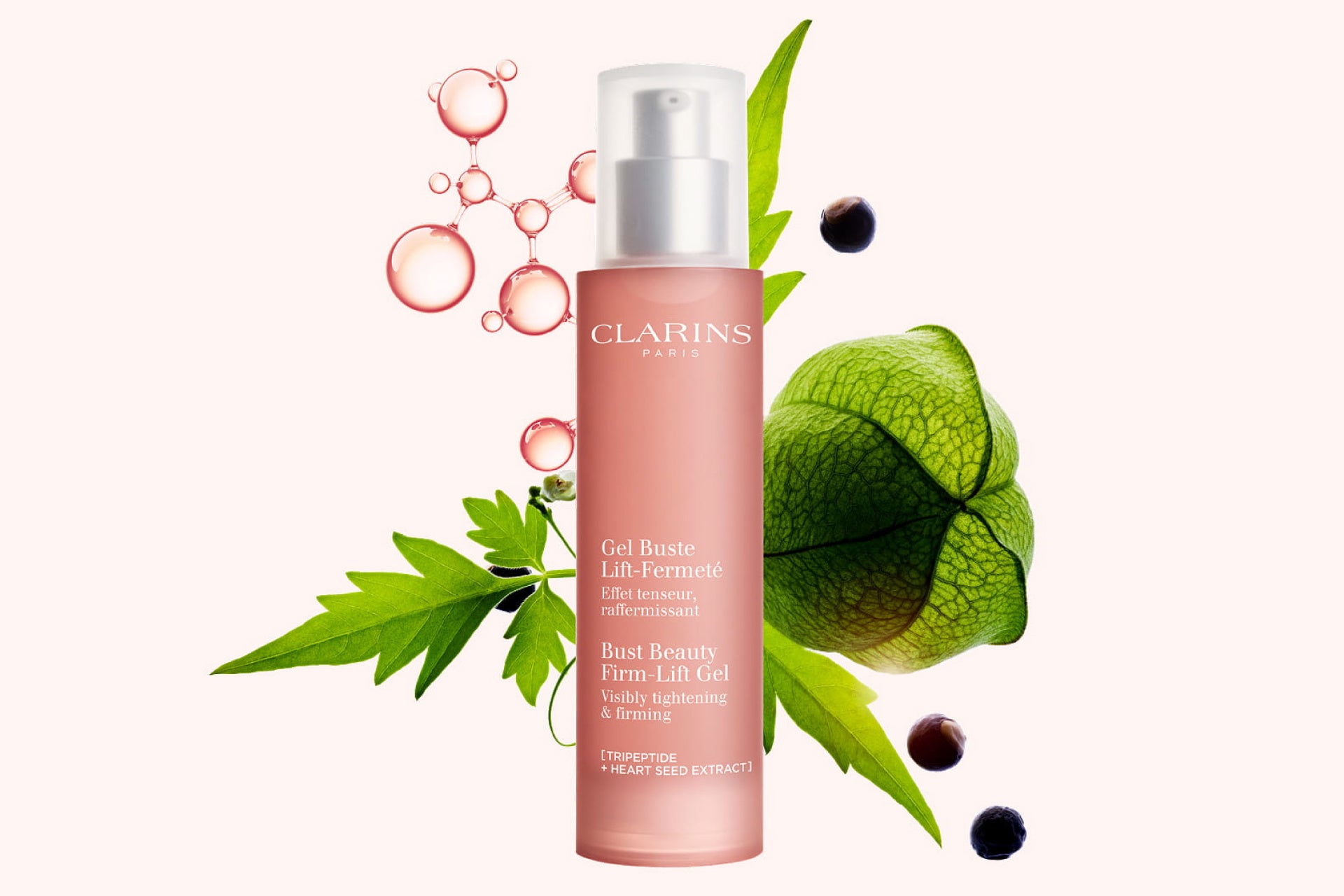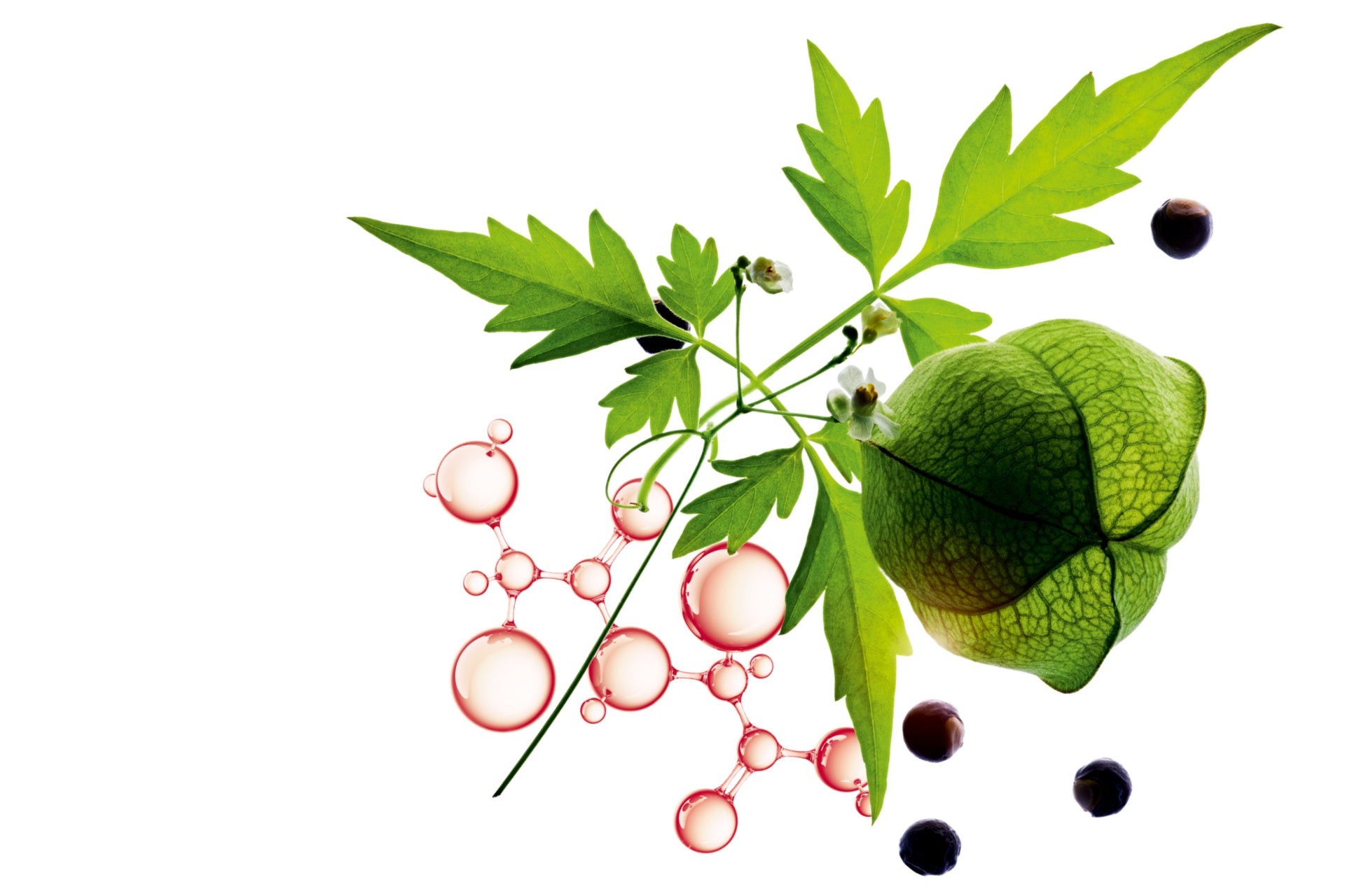 バストの肌悩みに寄り添い選ばれた、ハート型の種を持つフウセンカズラエキス*1 と、年齢による肌変化に着目してペプチド*2 を配合。