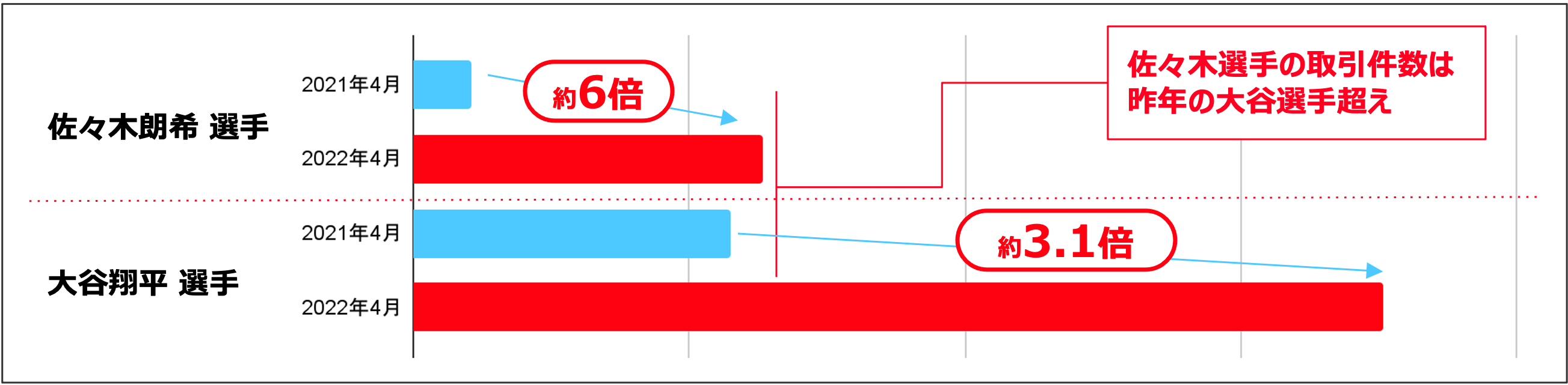 〜昨年同月比の取引件数では、大谷選手 約3.1倍、佐々木選手は約6倍に上昇!〜