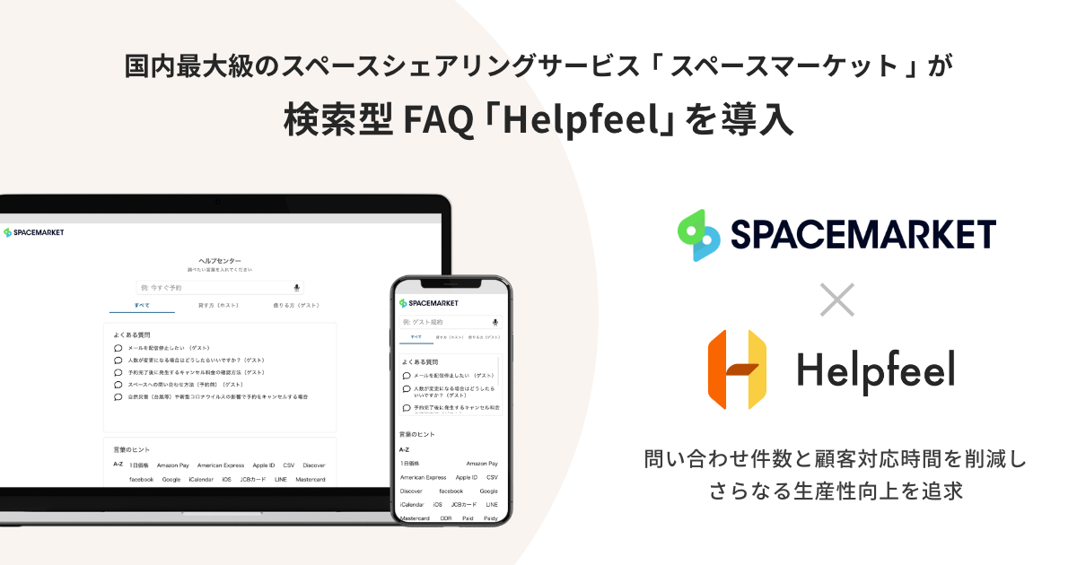 国内最大級のスペースシェアリングサービス「スペースマーケット」が、検索型FAQ『Helpfeel』を導入!