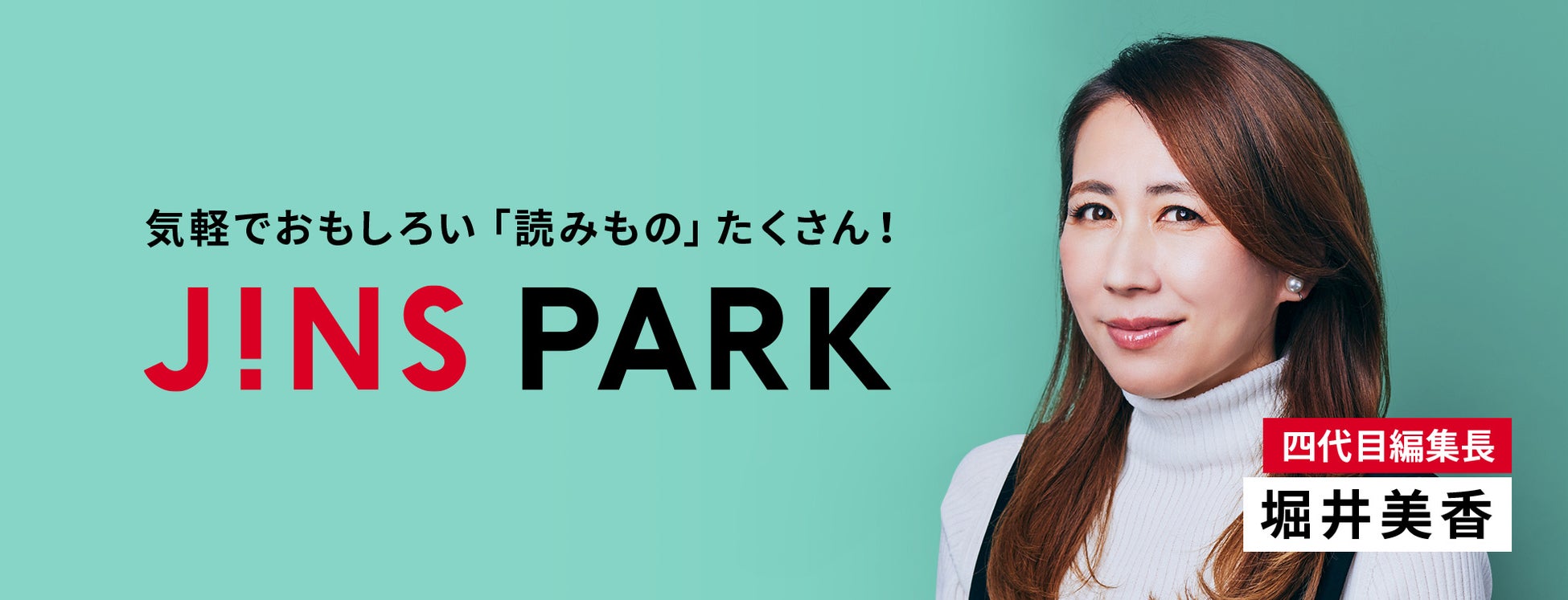 「JINS PARK」は、2023年2月で創刊1周年を迎えました。非常に珍しい数か月ごとの編集長期間交代制を採用、多方面で活躍する方を編集長としてお迎えしています。初代編集長にテレビプロデューサー・佐久間宣行氏、二代目編集長に作家・岸田奈美氏、三代目編集長にタレント・峯岸みなみ氏をお迎えし、大きな反響をいただきました。そしてこの度、四代目編集長にアナウンサーの堀井美香さんが就任しました。