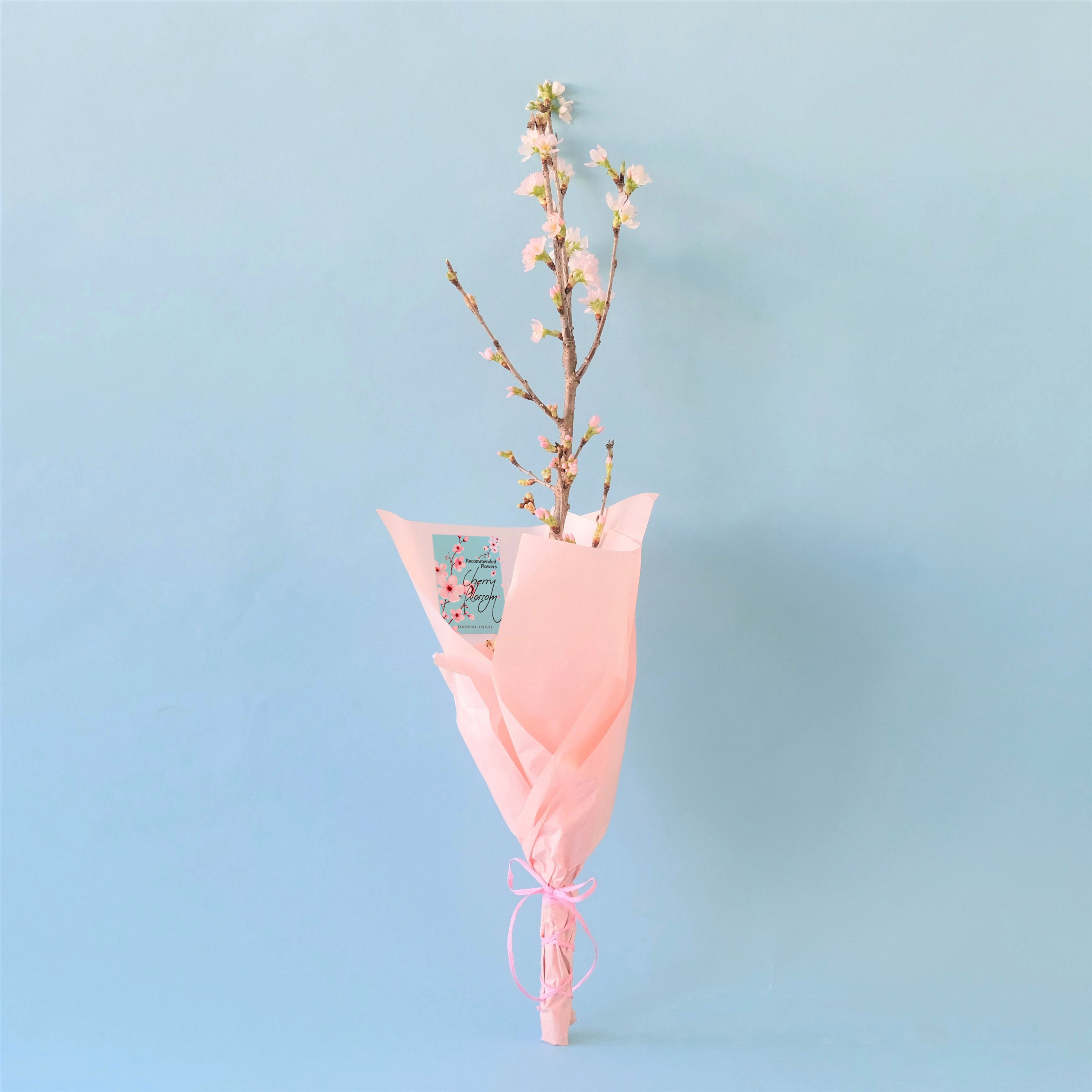 みなさんもこの季節ならではの桜を飾って春を五感で思い切り楽しんでみてはいかがでしょうか。桜が街で咲き始める頃には、花屋の店頭では見納めになることが多いので、お早めにお求めくださいね。