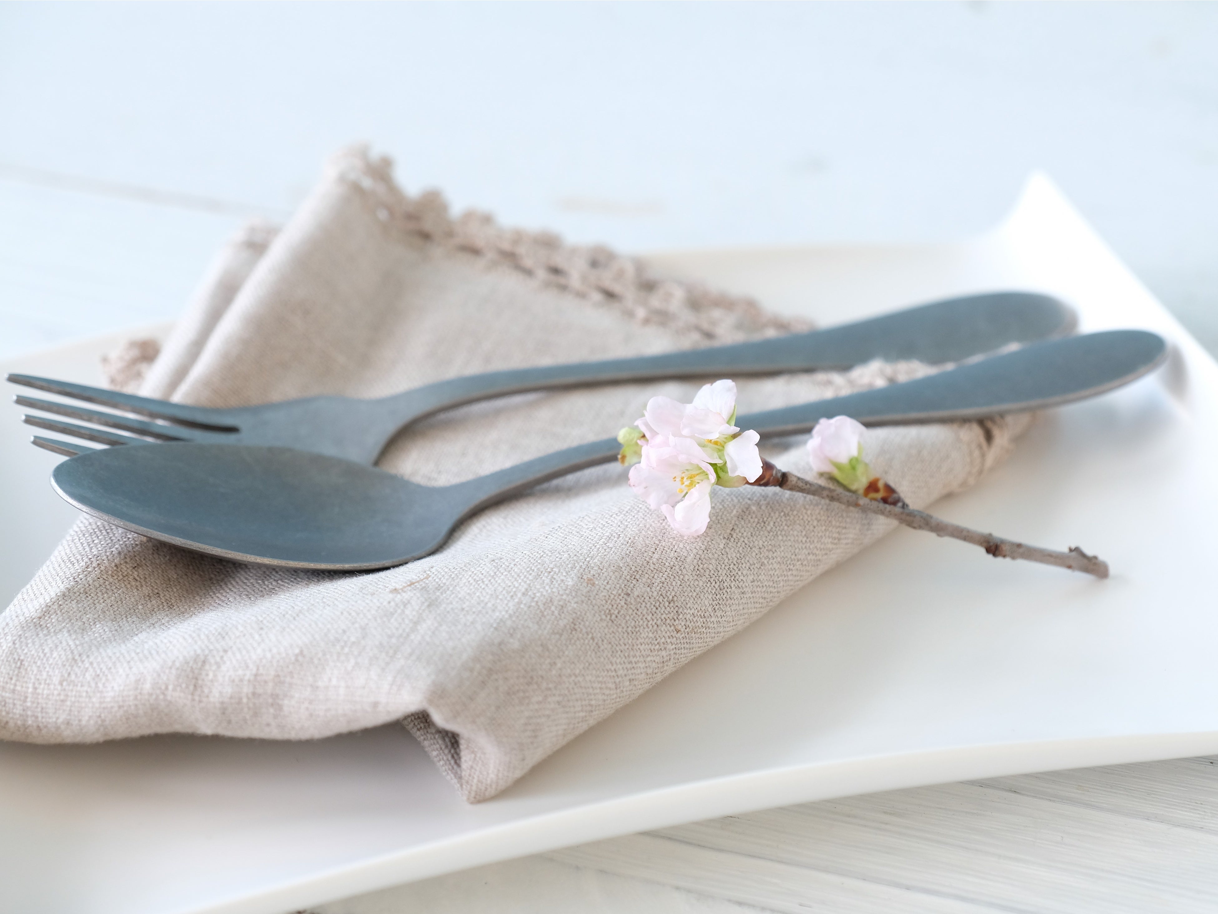 右:大切なゲストへおもてなしの心を込めて、お皿に一枝添える小さな花あしらい。