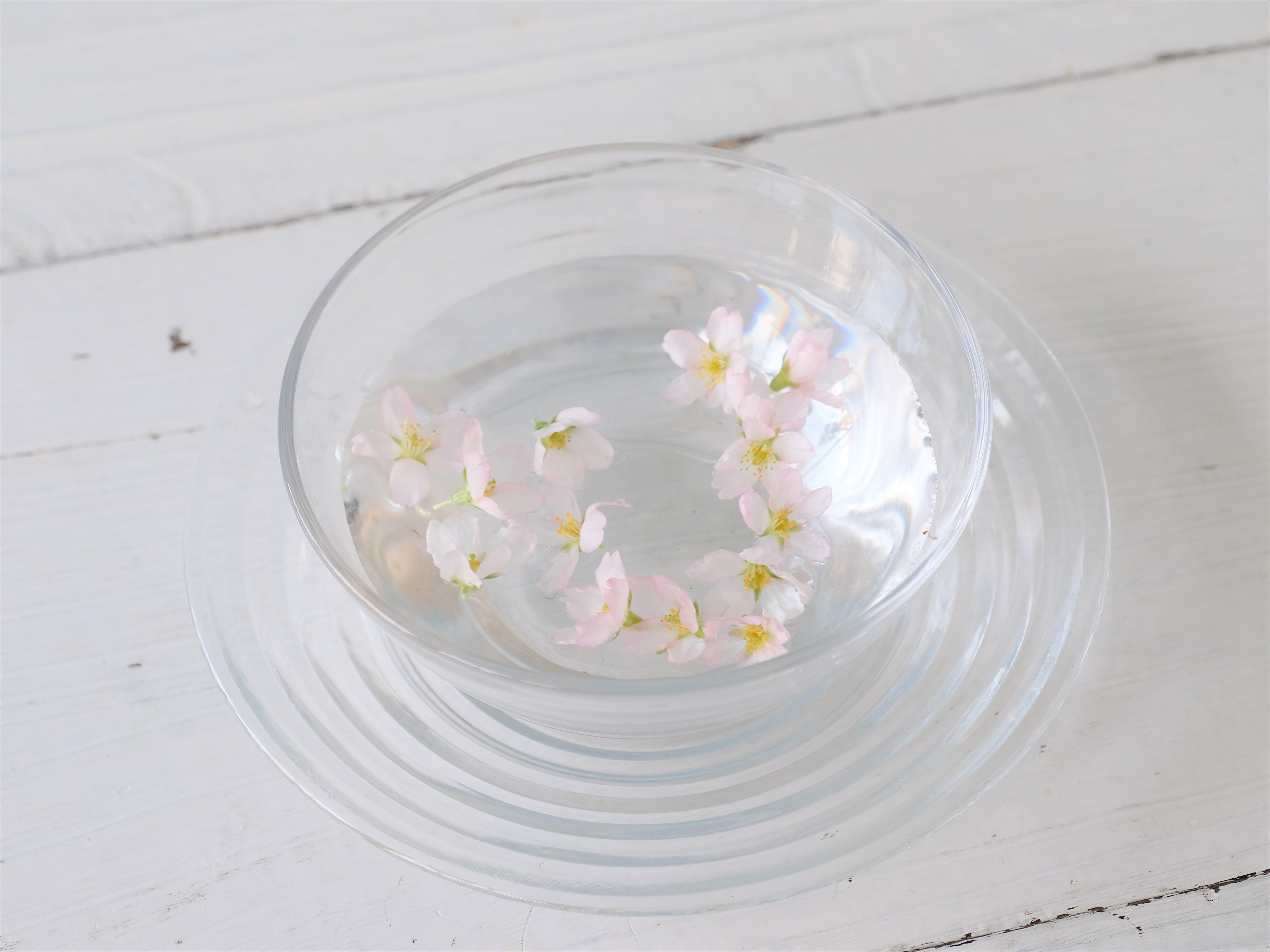 左:枝いっぱいに花がつく桜。花瓶に生ける時、水につかる部分の花は水が濁る原因になるので取り除きます。摘み取った花は水に浮かべて楽しみましょう。