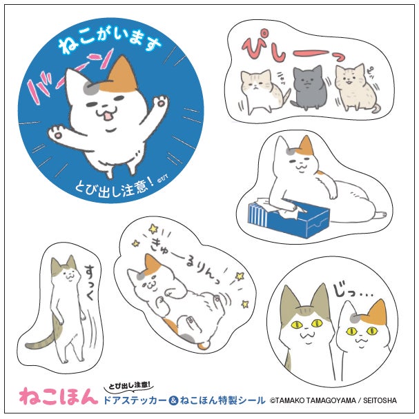 出版物の制作販売を行う株式会社西東社(東京都文京区、代表取締役:若松和紀)は、2022年10月11日より一部のローソン店舗限定で、ペット書『ねこほん 猫のほんねがわかる本』のオリジナルステッカー付きを販売します。『ねこほん』はねこの気持ちや生態をマンガと解説で紹介する1冊で、累計発行部数は12万部を超えるベストセラーです。ローソン限定デザインのステッカーは、ドアに貼って「ねこ飛び出し注意」を喚起するもののほか、ローソンカラーのティッシュケースの上でくつろぐねこなど全6種がデザインされています。