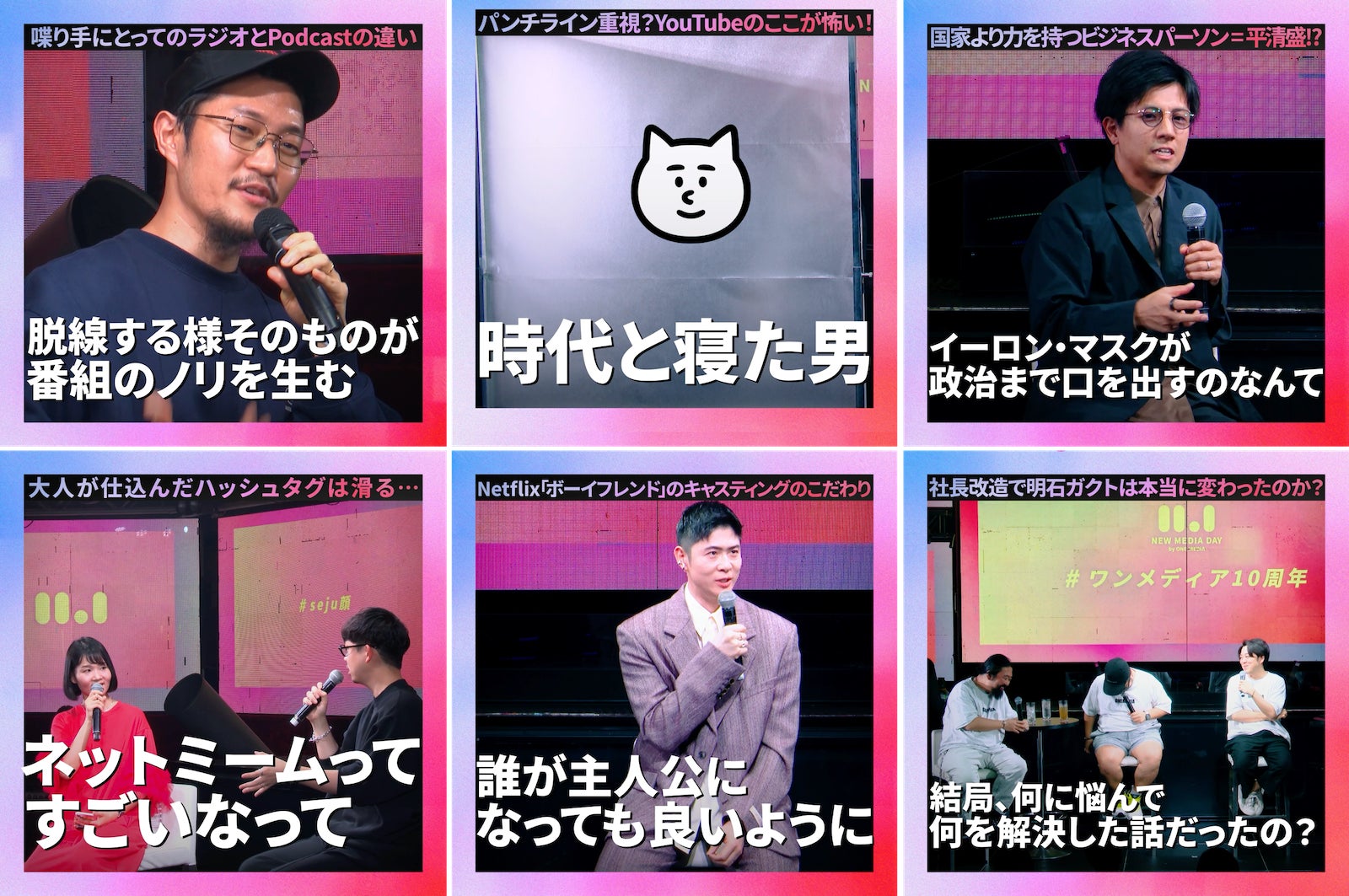 なお、配信するセッション映像は日頃からワンメディアとお取引のある広告主様・パートナー企業様・ショート動画クリエイターなど約200名をご招待して実施した完全クローズドイベント『NEW MEDIA DAY 2024』内で公開収録を行った全6セッションの特別映像版になります。