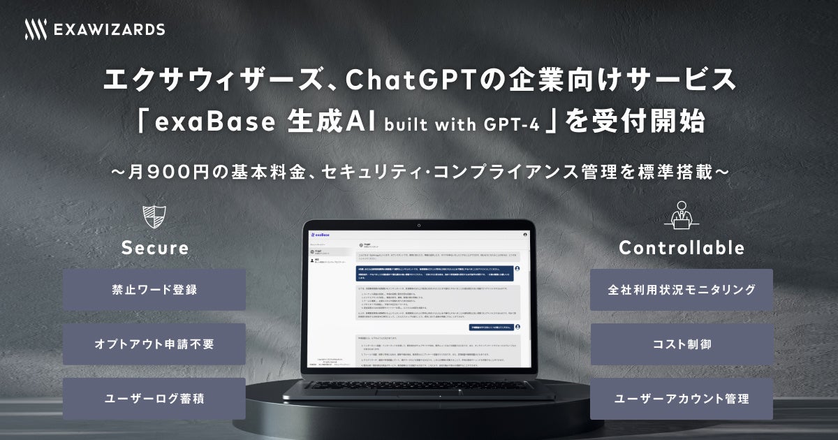 エクサウィザーズ、ChatGPTの企業向けサービス 「exaBase 生成AI built with GPT-4」を受付開始