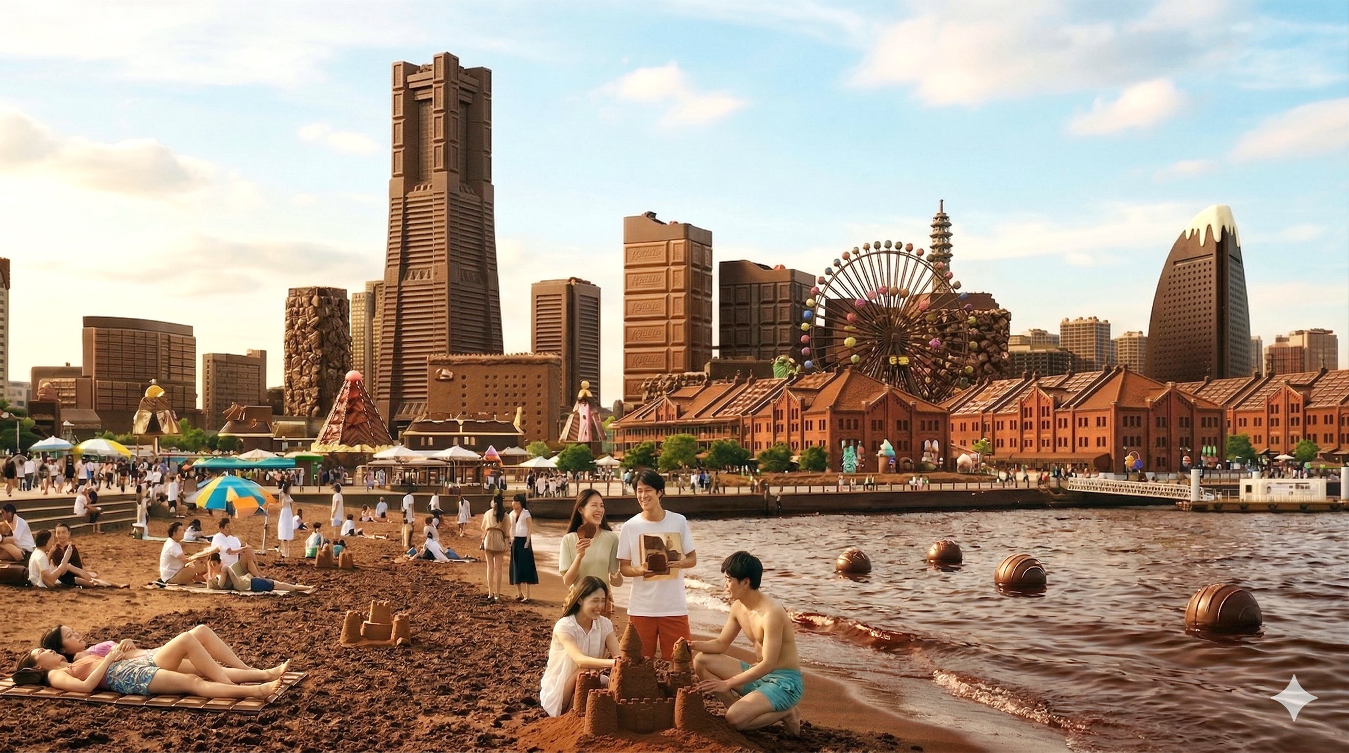 ① 横浜にチョコの砂浜を開発。