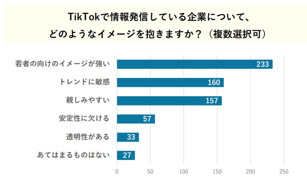 Q2.TikTokで情報発信している企業について、どのようなイメージを抱きますか?