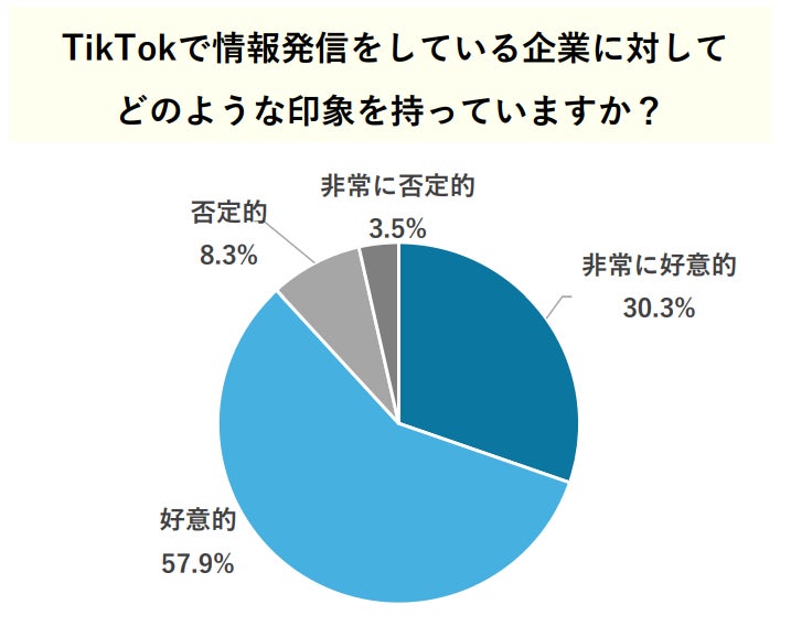 20代の男女の約88%がTikTokで情報発信をしている企業に対して好意的にとらえていることがわかりました。