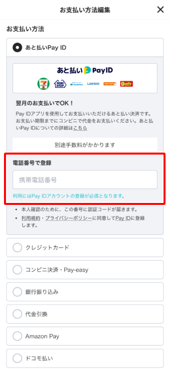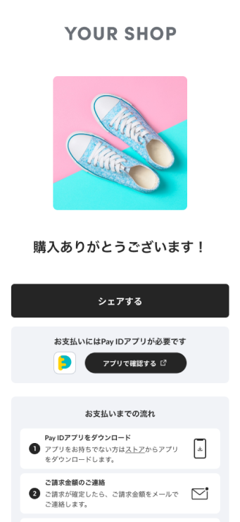 ・現在、「あと払い(Pay ID)」の決済は、Webブラウザでのみ利用できます。年内には、アプリでの購入時にもご利用いただけるようにアップデートを予定しています。