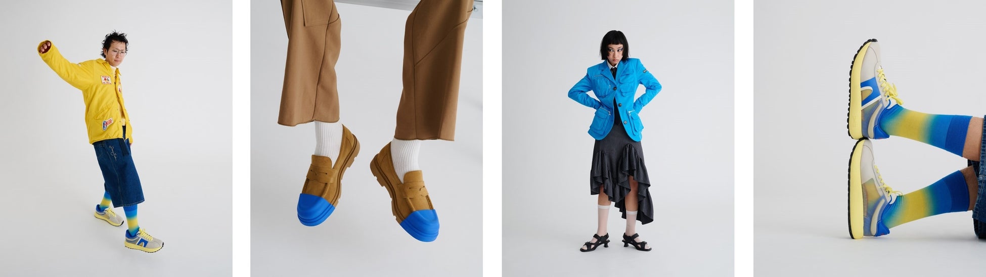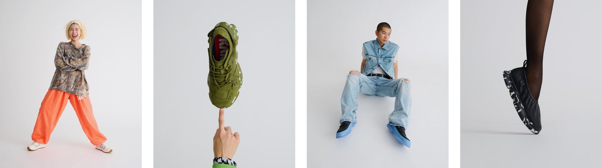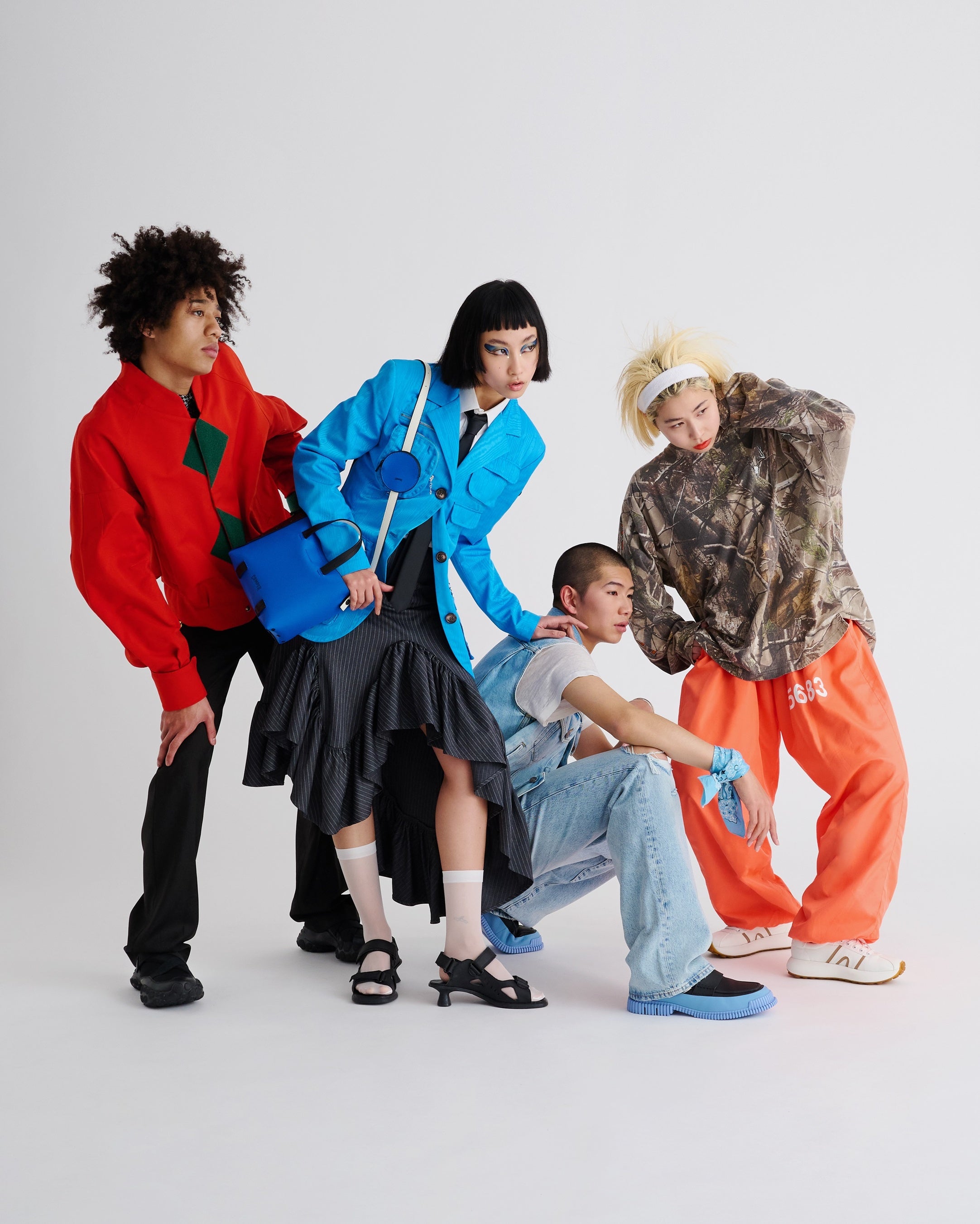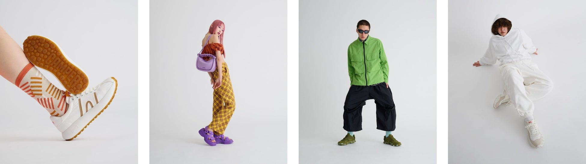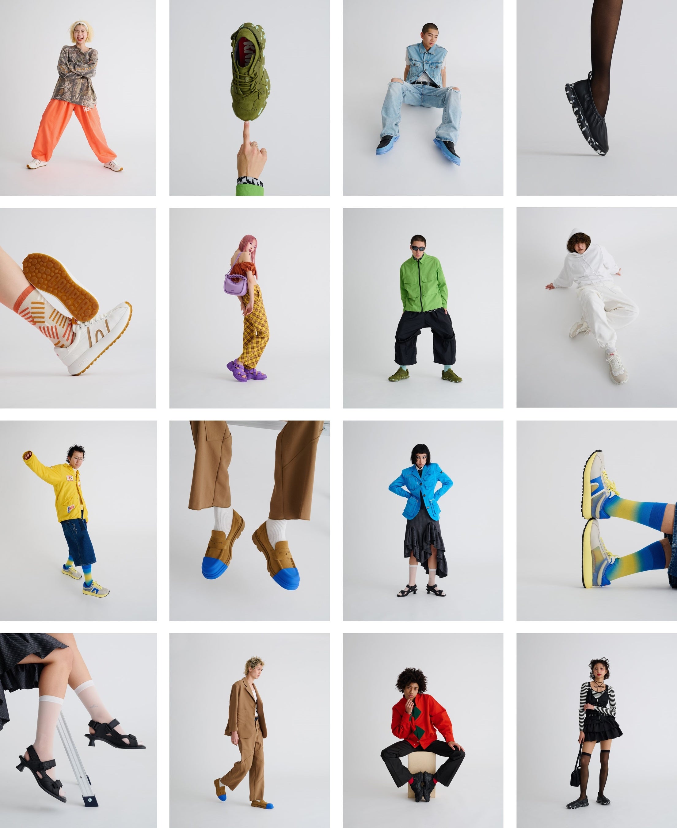 モード・ストリート・カジュアル・Y2K・テック・ナード・グランジなど、一つのジャンルに絞られない自由なスタイリングと、プレイフルなカンペールのシューズが不思議と馴染む、カンペールらしいユーモアと多様性を表現したビジュアルをお楽しみください。