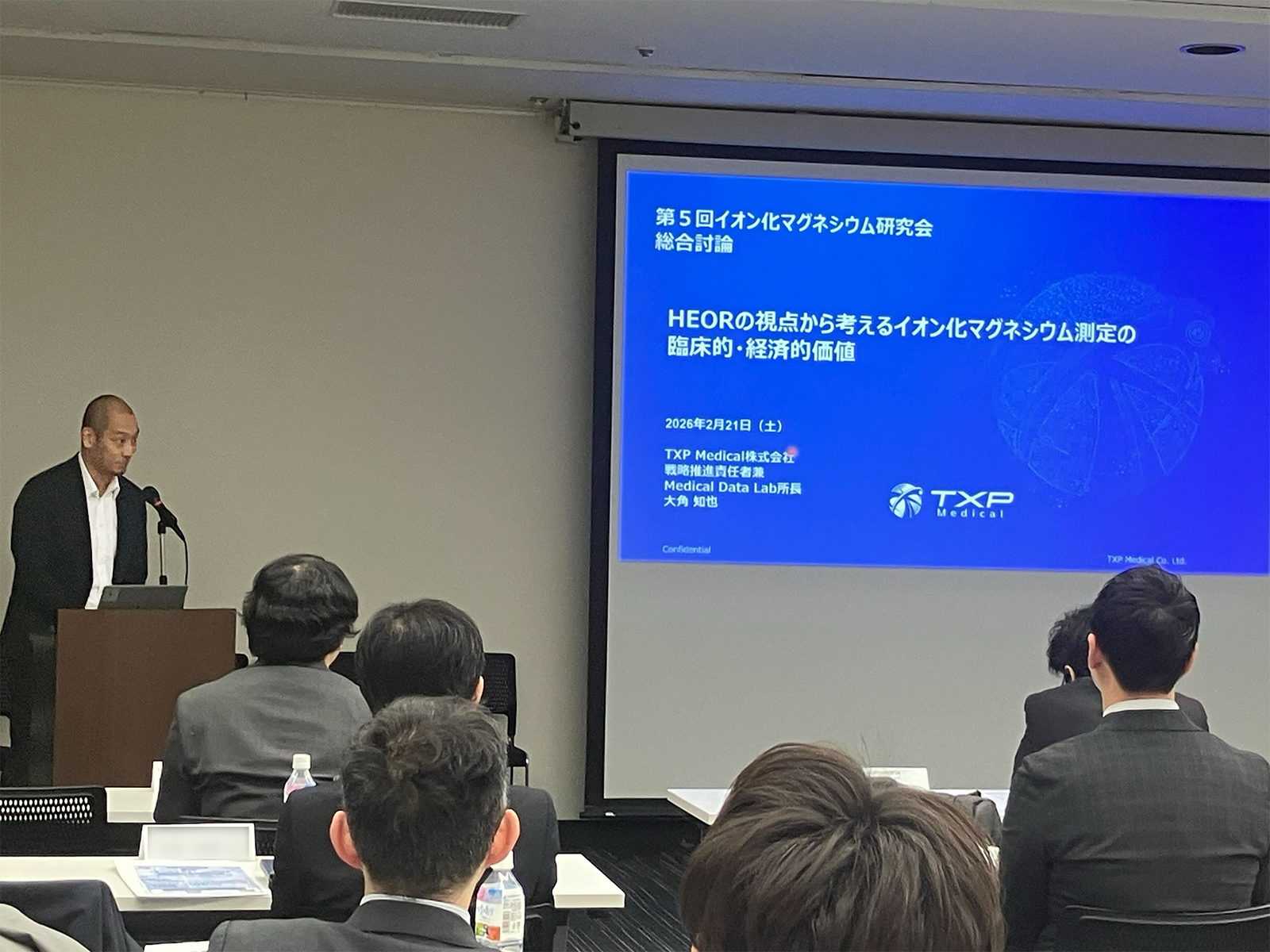 TXP Medical株式会社(本社:東京都千代田区、代表取締役CEO:園生智弘、以下「TXP Medical」)の戦略推進責任者 兼 Medical Data Lab所長 大角知也は、ノバ・バイオメディカル株式会社が主催する第5回イオン化マグネシウム研究会に登壇し、HEOR(Health Economics and Outcomes Research)をテーマに講演を行いました。