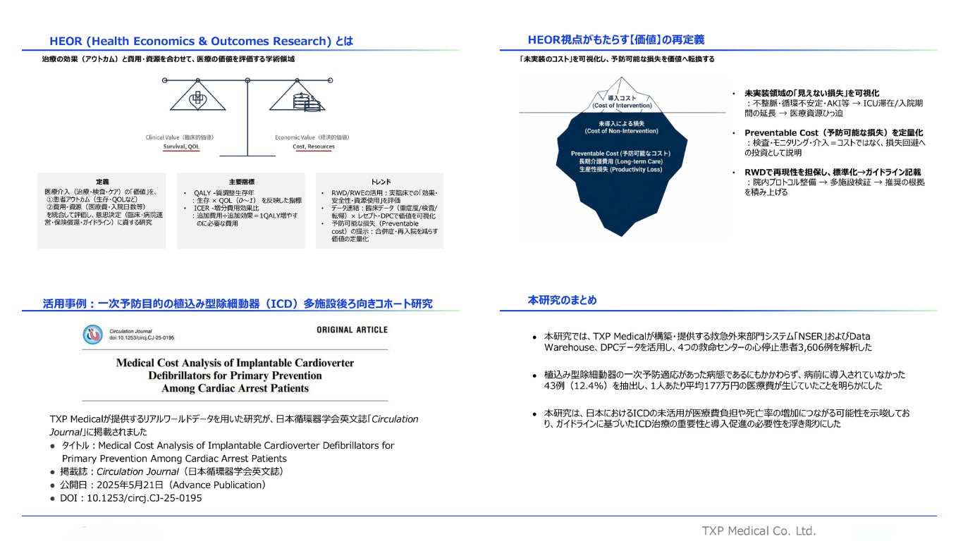 TXP Medicalでは今後も、イオン化マグネシウム測定をはじめとする臨床指標において、エビデンス創出および費用対効果の可視化を支援してまいります。あわせて、リアルワールドデータ(RWD)の高度活用を通じて、臨床的有用性・医療経済的妥当性・社会的インパクトを統合的に評価する仕組みの構築を推進し、持続可能な医療システムの実現に貢献してまいります。