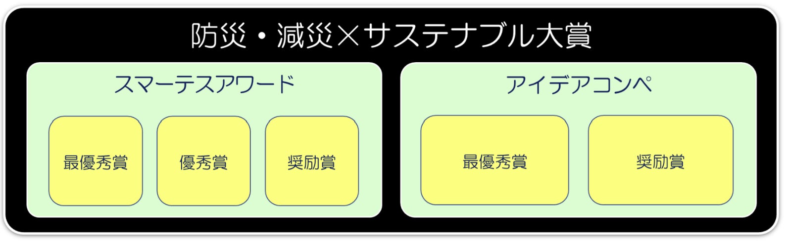 今回より褒賞は、レジリエンス性およびサステナブル性の側面からなる以下2カテゴリーとし、実績や成果を評価する「スマーテスアワード」と、実現性に縛られない自由な発想を評価する「アイデアコンペ」を対象に、公募制にて募集が行われました。