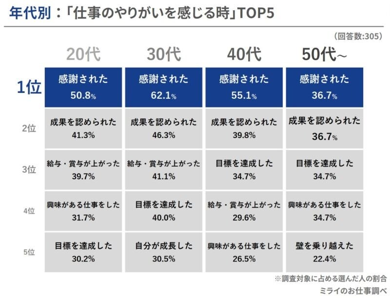 2023年版:仕事のやりがいを感じる時ランキング!「感謝された時」が53.4%で男女・世代を問わず1位に!