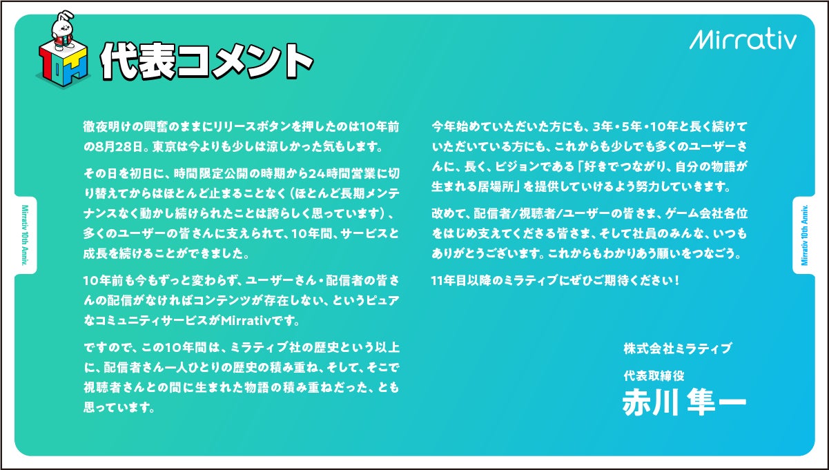 ■ Mirrativ 10th Anniv. ~Mirrativ10周年について~