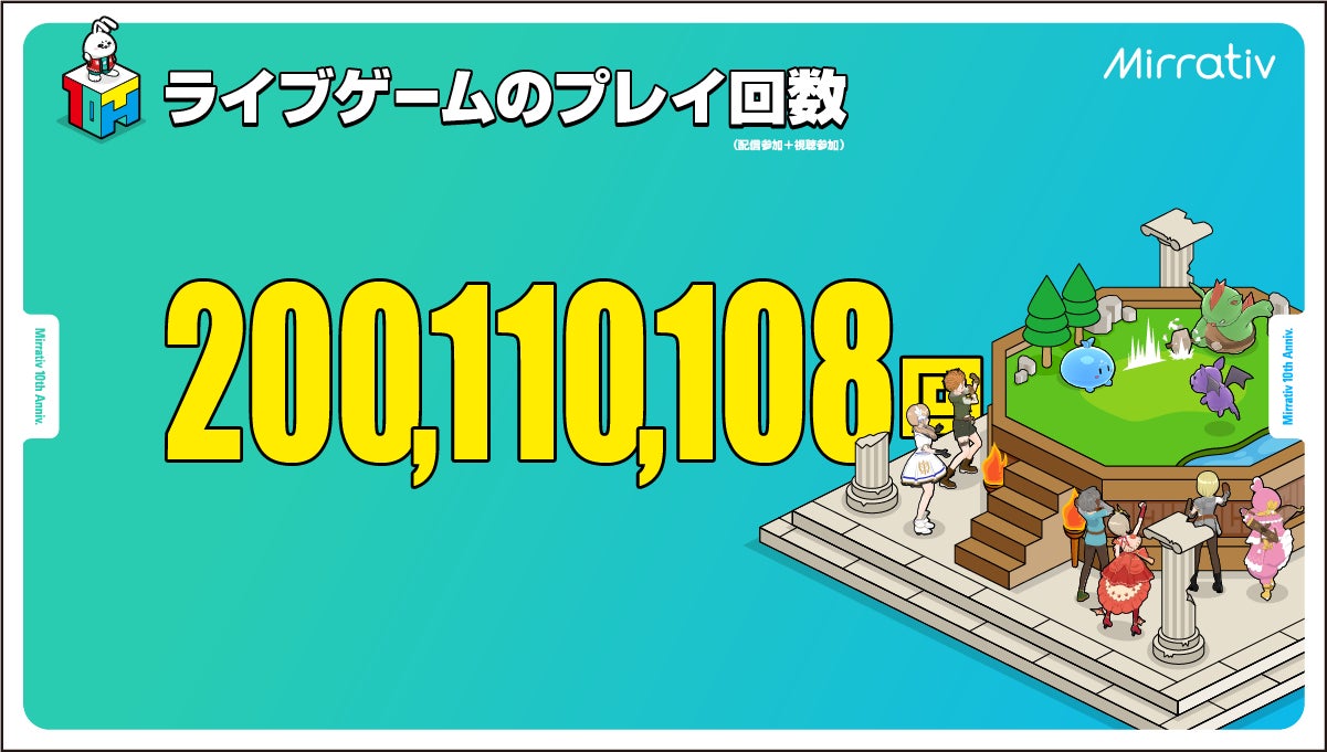 ミラティブが2022年より開発を開始した、配信中のゲームに視聴者が介入したり参加したりできる、ゲームとライブ配信が融合した「ライブゲーム」。そのプレイ回数は2億回を超え、日々多くの配信者さんがライブゲームをプレイし、視聴者さんがそのゲームに参加しています。