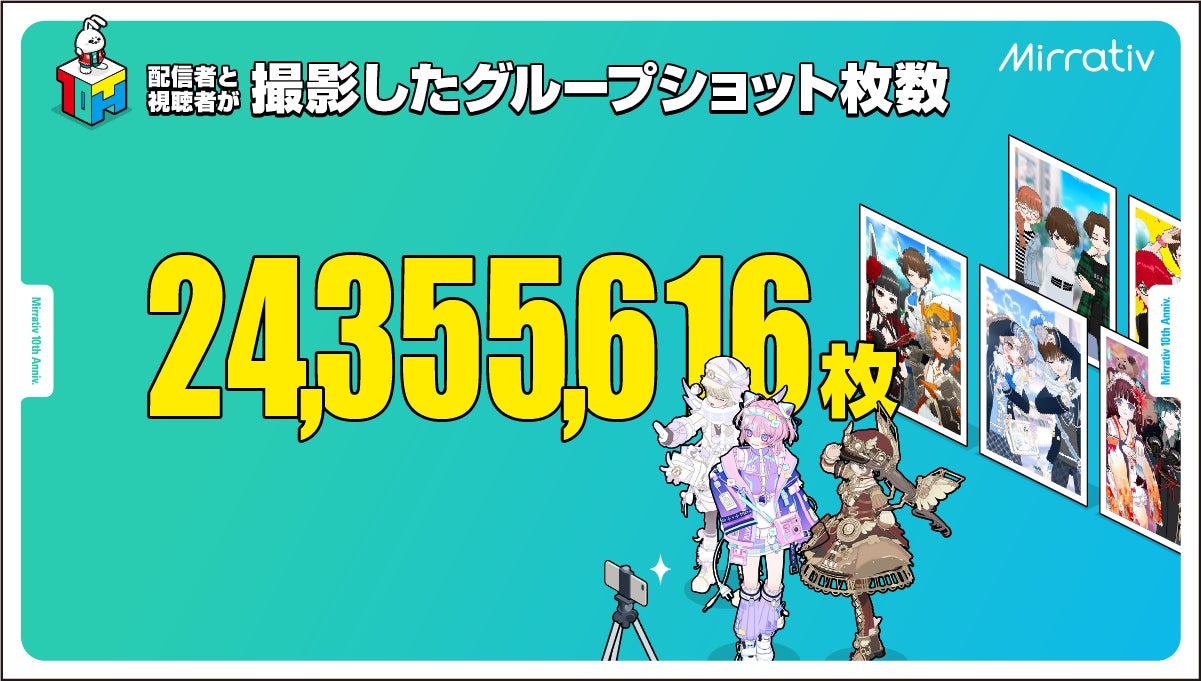 配信者さんと視聴者さんの思い出を残すグループショット。機能がリリースされて以来、累計2千400万枚ものグループショットが撮影されました。その多くが今もMirrativの中で見ることができます。