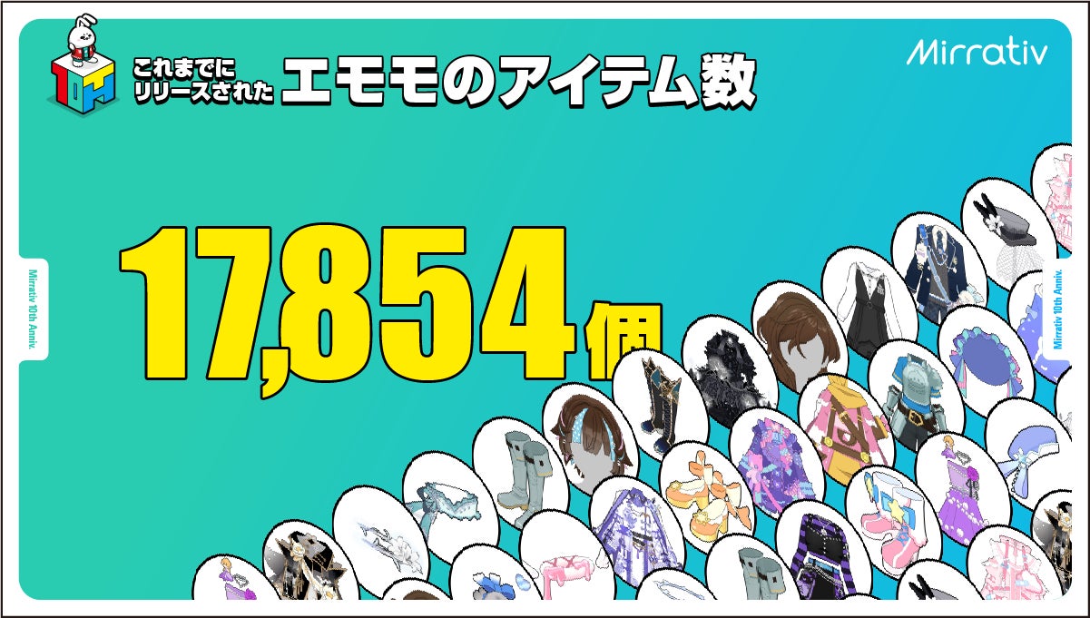 「あなたは、誰にでもなれる」というリリース当初からのコンセプトのまま、今も毎週新作エモモアイテムをリリースし続けており、今では17,854個のアイテムがユーザーさんの手に渡って楽しまれています。