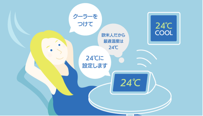 ホテル、旅館、病院、介護施設などの宿泊施設には、年齢、性別、国籍、住所等の属性が異なるさまざまな宿泊ゲストが宿泊しています。そのため宿泊ゲストの属性に応じて、好みの室内温度や照明等の客室環境は、様々に異なる問題があります。そこでTradFitは、AIスピーカーから宿泊ゲストの要望を受け付けて、自動で室内温度や照明等の客室環境を宿泊ゲストに最適な状態にする基本特許技術「客室スマートコントロール」によって、この問題を解決します。