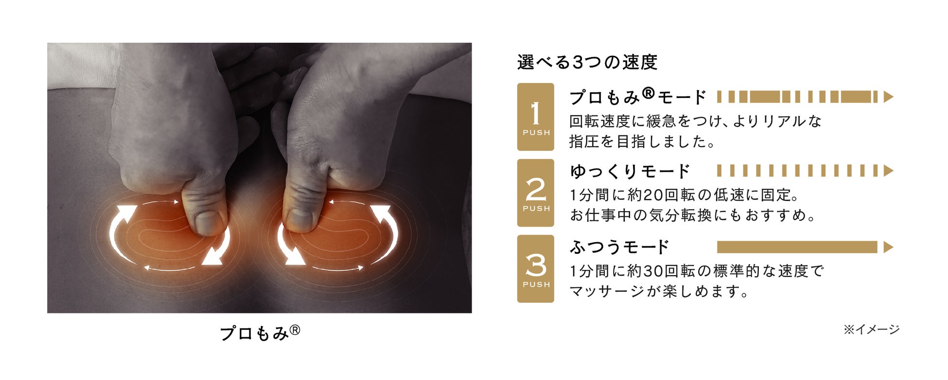 もみ速度:プロもみ®・ゆっくり・ふつう