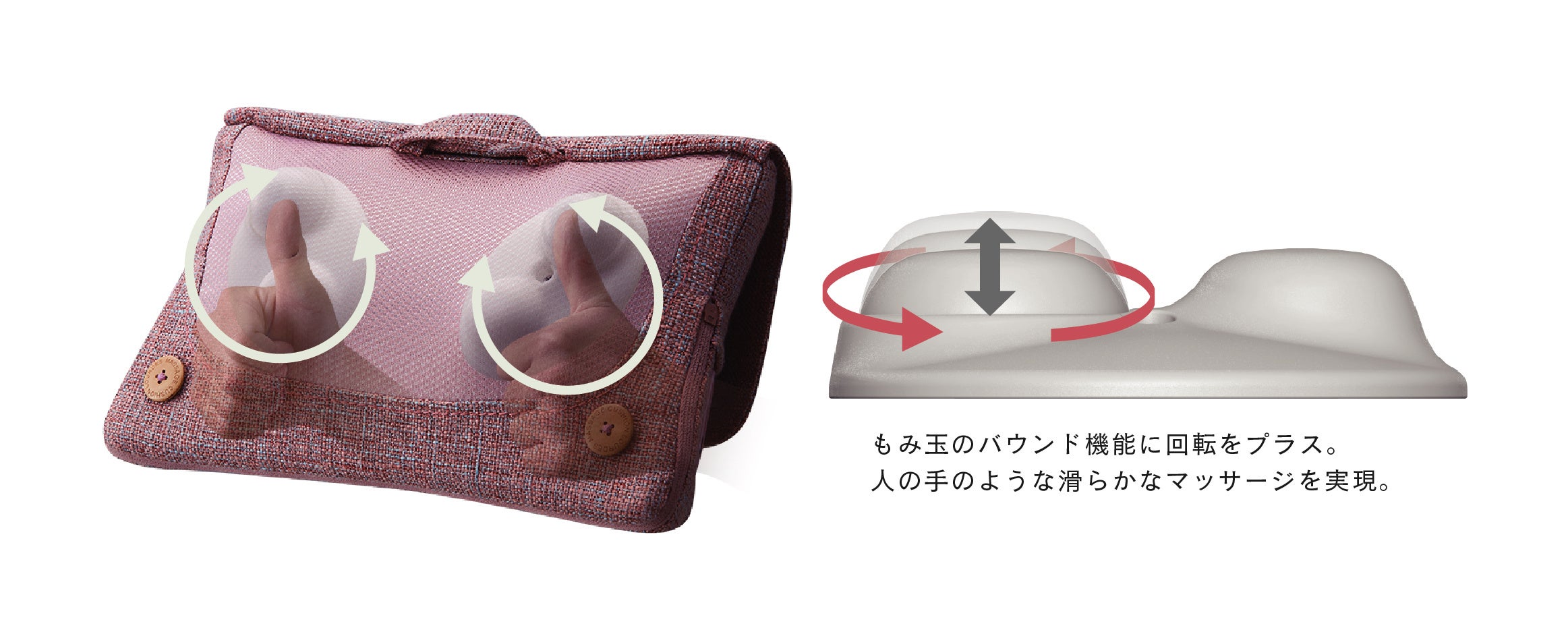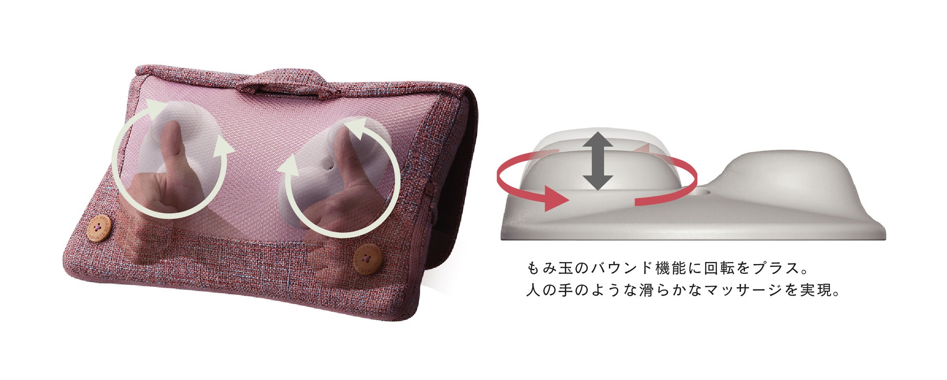 本製品は体の凹凸に沿って滑らかにマッサージできるように、もみ玉が回転しながら上下にバウンドする「バウンド回転もみ玉」を採用しています。このもみ玉が筋肉をしっかりとらえてマッサージできるとして高評価を得ました。また、もみ速度も3種類選べることがコストパフォーマンスの評価につながりました。