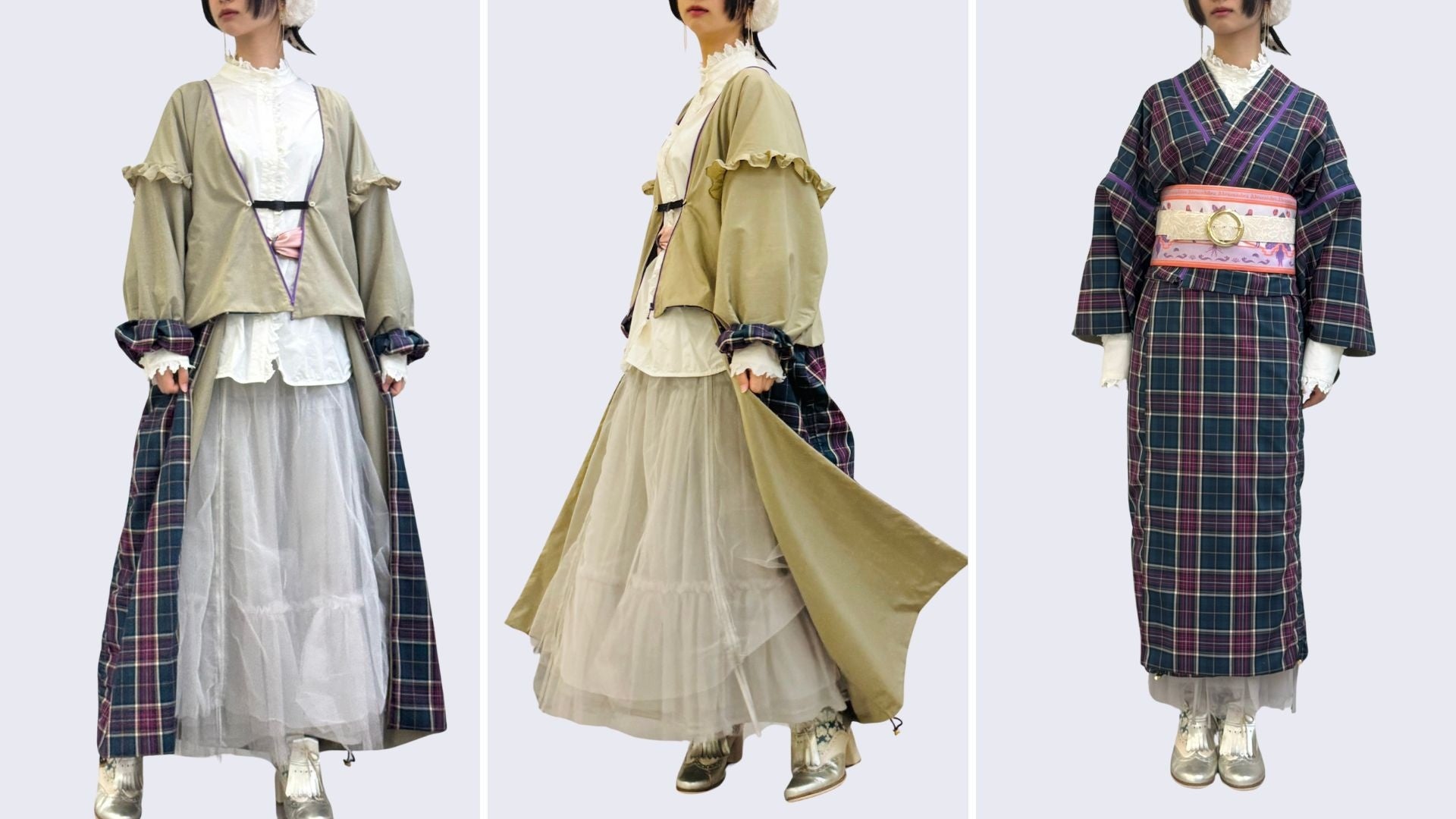 「洋服としても和服としても楽しめる、この一着で日常も特別な日も自由に着れるアイテムを作りたい」という『ハイカロリイオトメ』のデザイナーの想いから生まれたのが今回の新作。