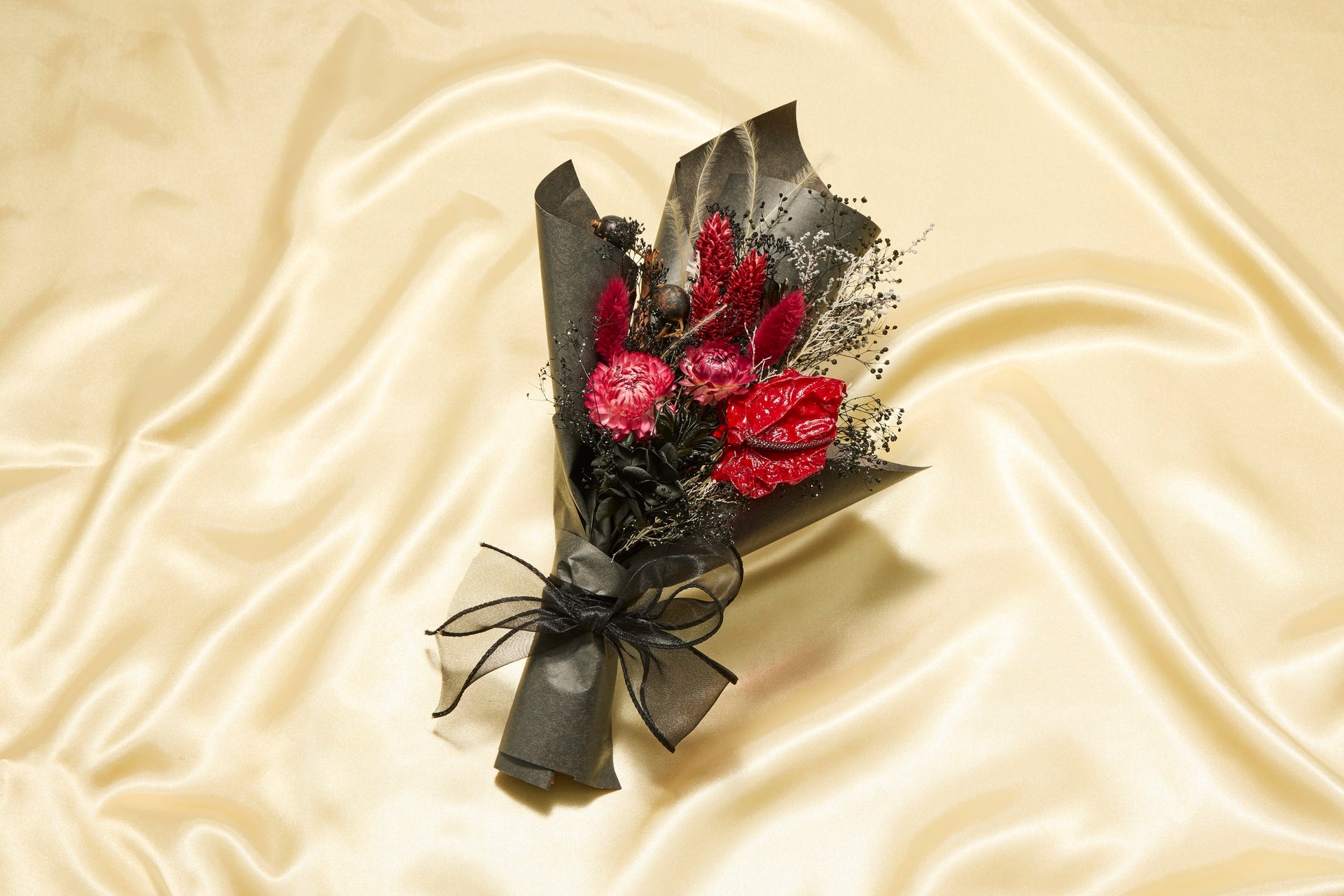 枯れないお花でつくる、赤と黒が際立つこの時期だけの特別なブーケ