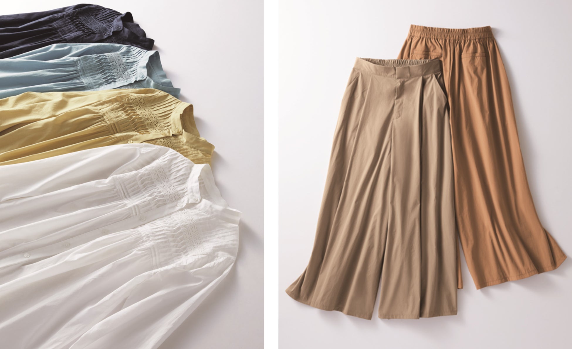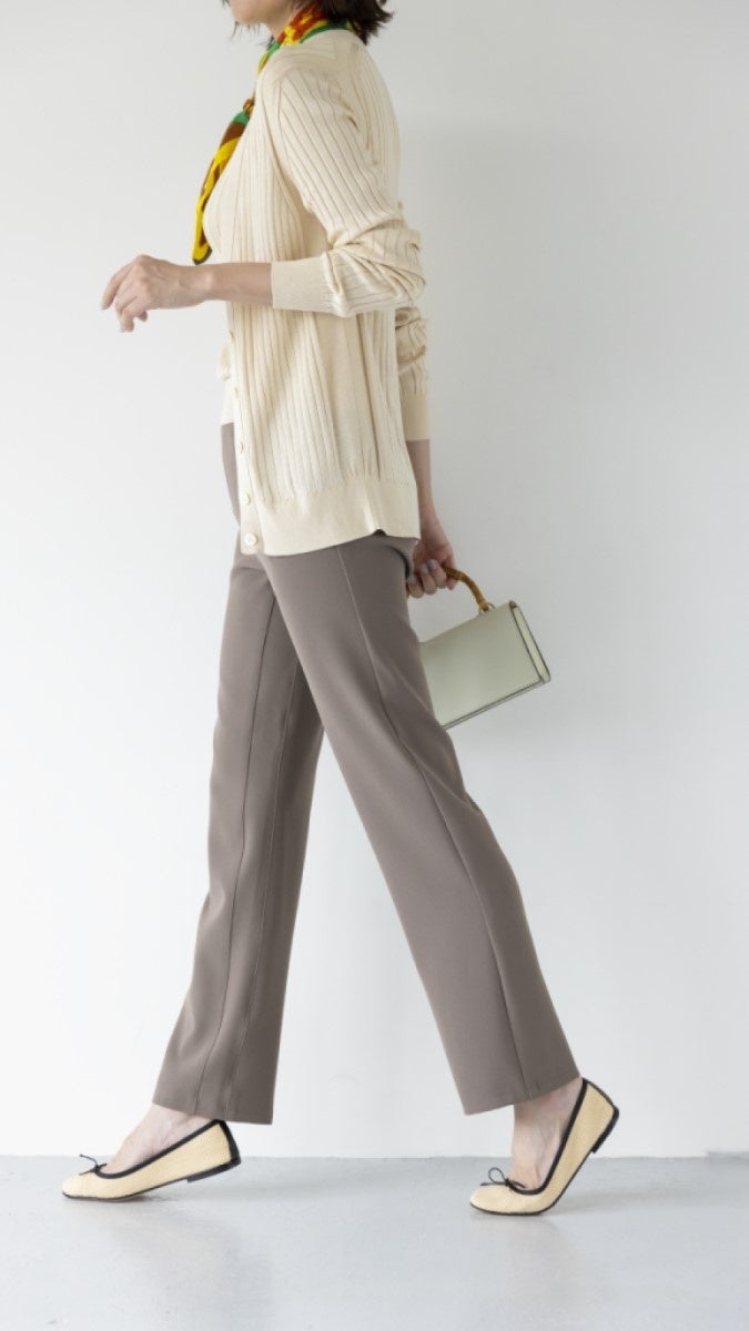 大人女性の体型の悩みを解消するハルメクの新ブランド!ウエストが総ゴムで、引っ張るだけで手間なくはけるパンツ。体に合わせてフィットする素材、立体マチによるすっきりシルエットをぜひ店頭で実感ください。