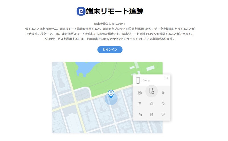 Step 1:Galaxyアカウントで「端末リモート追跡」(https://findmymobile.samsung.com)へアクセスする